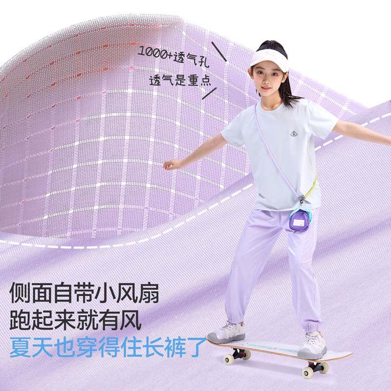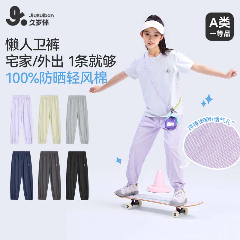 久岁伴女童运动裤纯棉网眼透气速干宽松长裤中大童外穿裤2026新款
