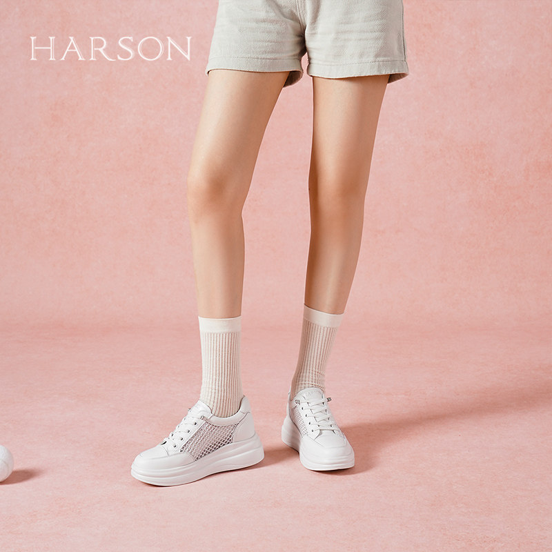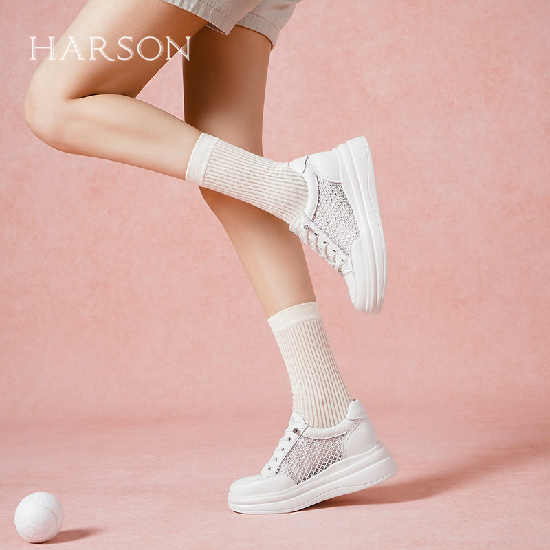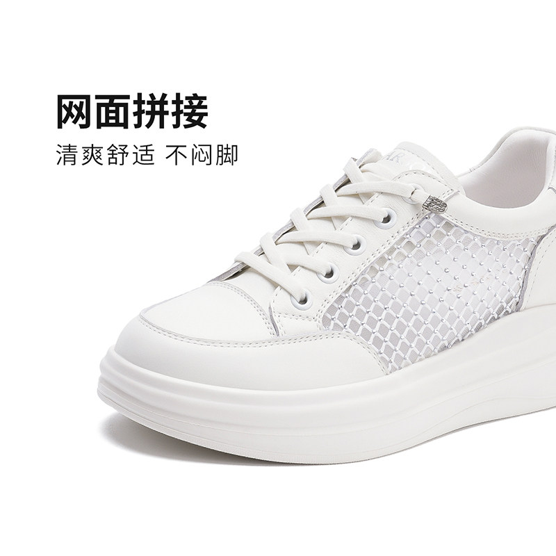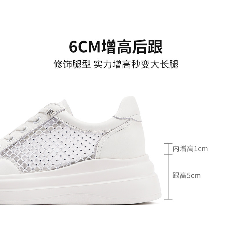 哈森时尚休闲小白鞋2025秋季新品内增高免系带网面女鞋HCL250301