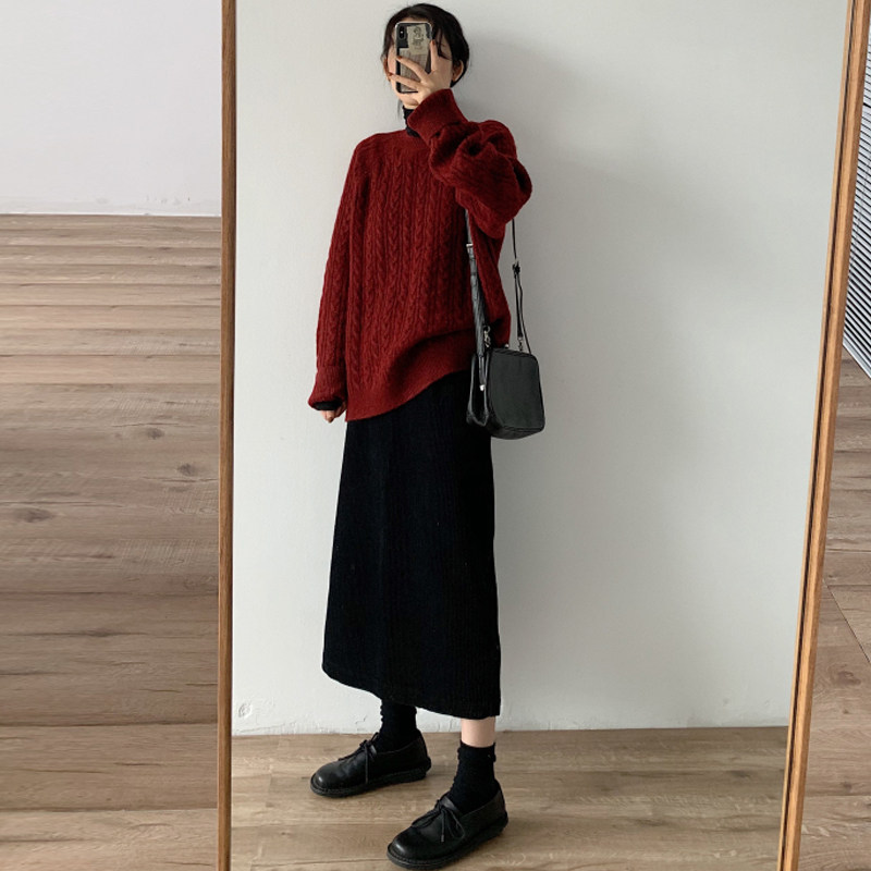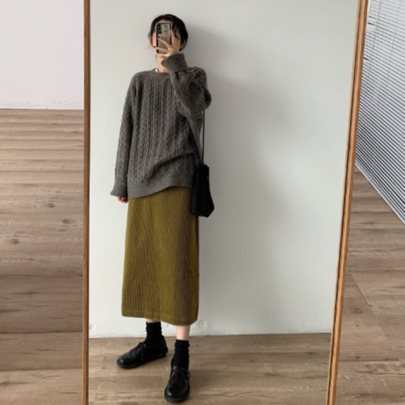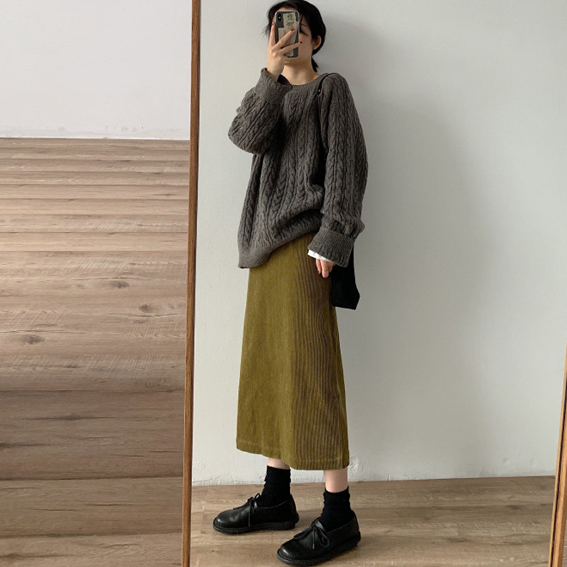 婧麒孕妇半身裙秋冬季外穿时尚款灯芯绒开叉半裙秋季显瘦直筒裙子
