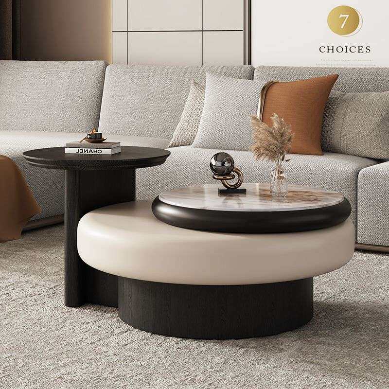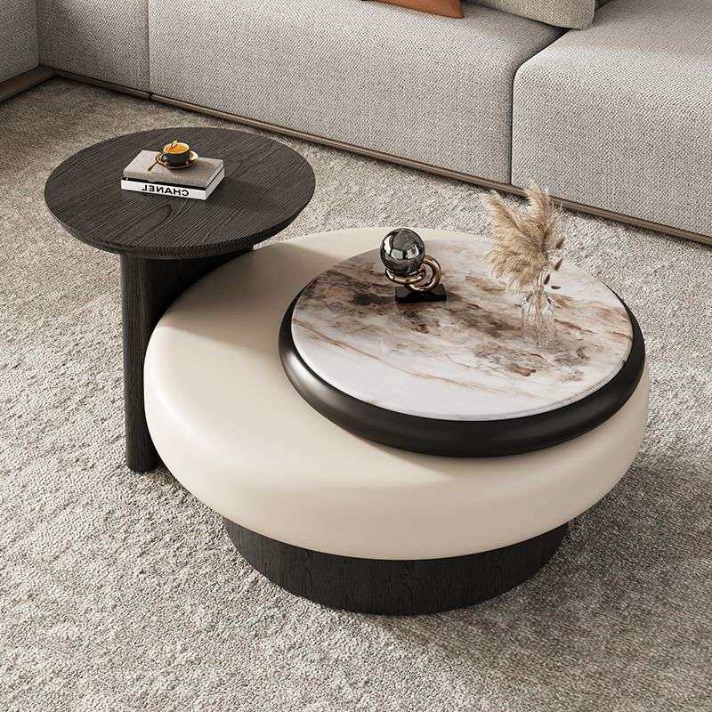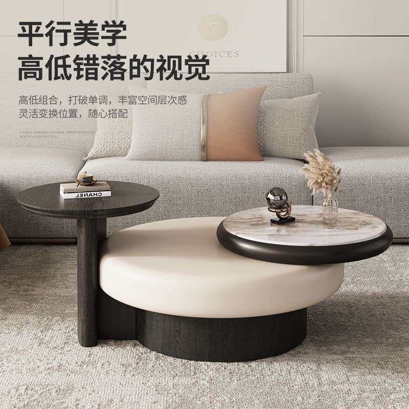 意式轻奢旋转圆形茶几组合极简现代简约客厅家用创意感微晶石