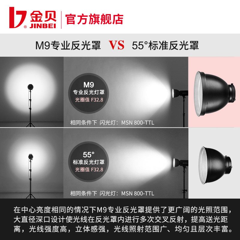 金贝M9专业反光灯罩摄影灯闪光灯反光碗标准罩硬光罩摄影光效附件