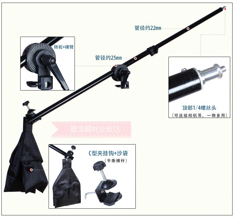 悬臂架横臂顶灯架 摄影棚拍照灯附件 小型摄影灯横臂架横杆架