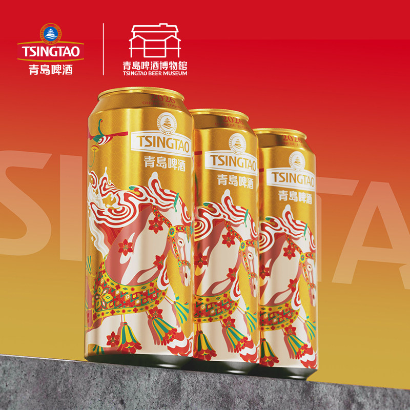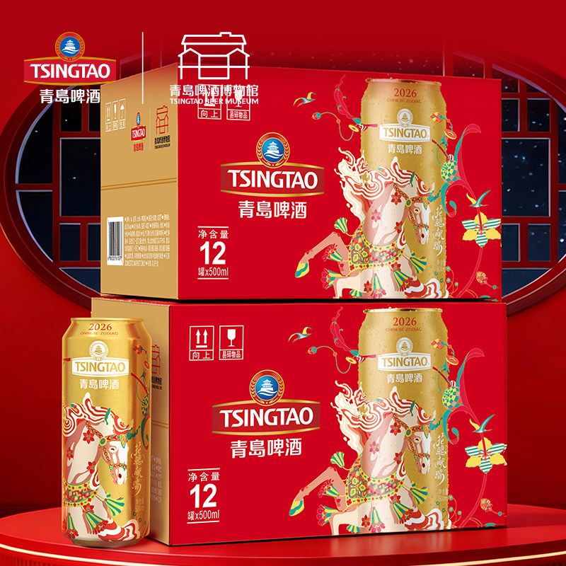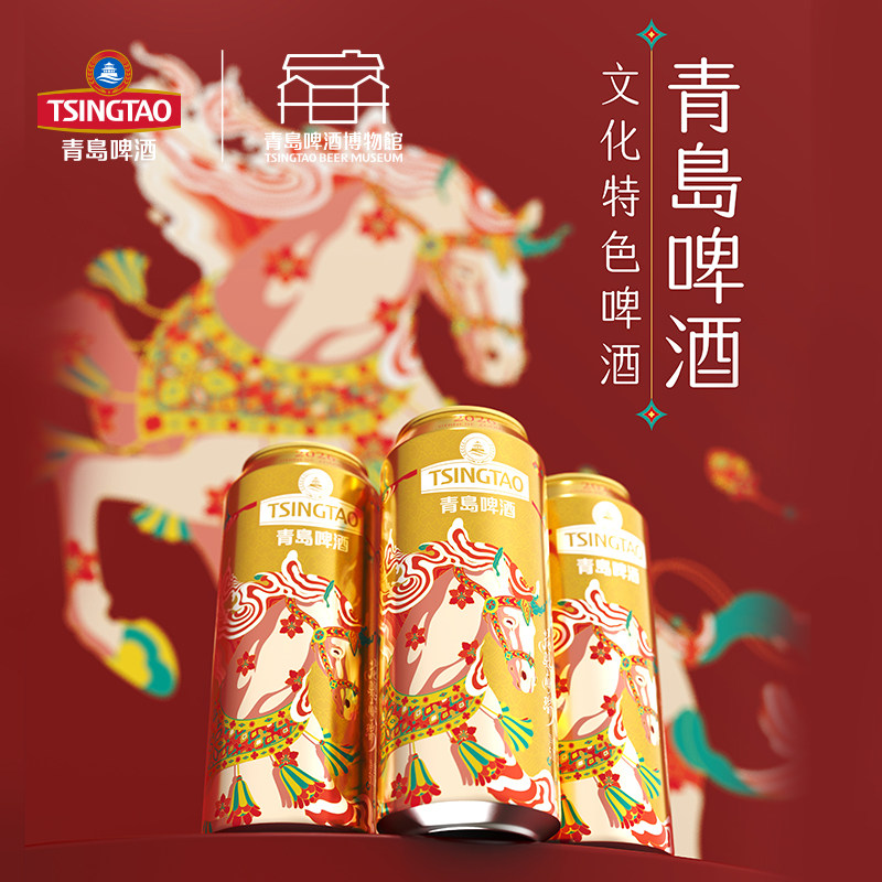 青岛啤酒马年生肖啤酒500ml*12罐花骢献瑞青岛啤酒博物馆官方直营