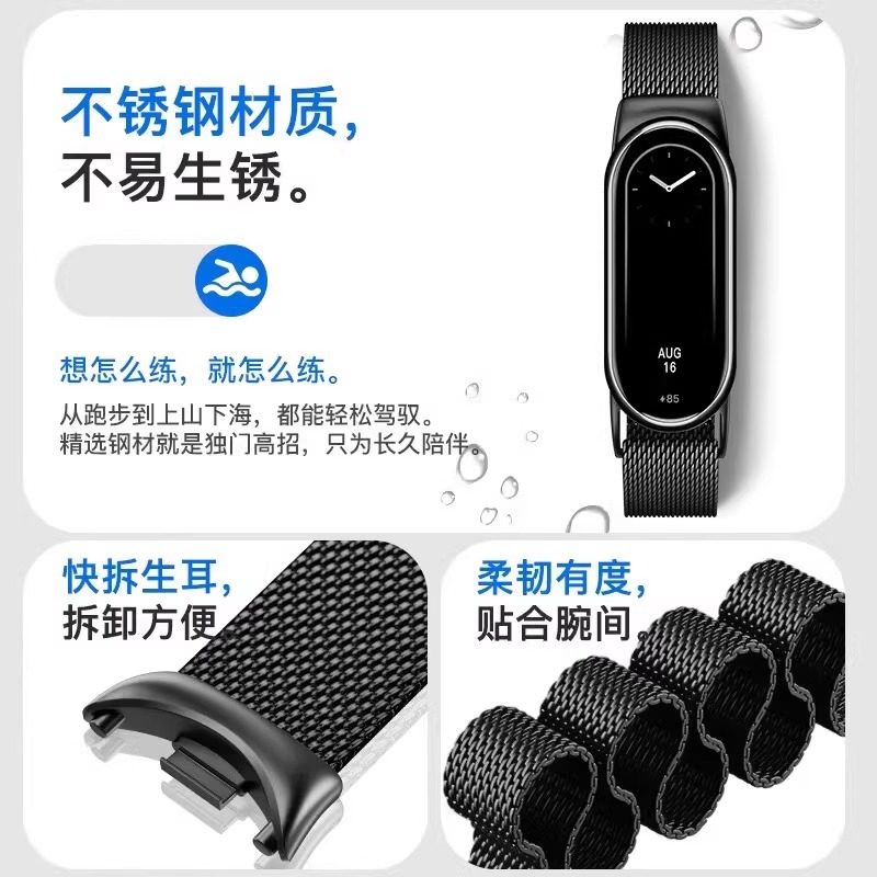 适用小米手环9/10米兰尼斯表带手环9磁吸腕带9/10NFC版男女高级磁吸金属表链透气8/9替换带秋季男女款夏天
