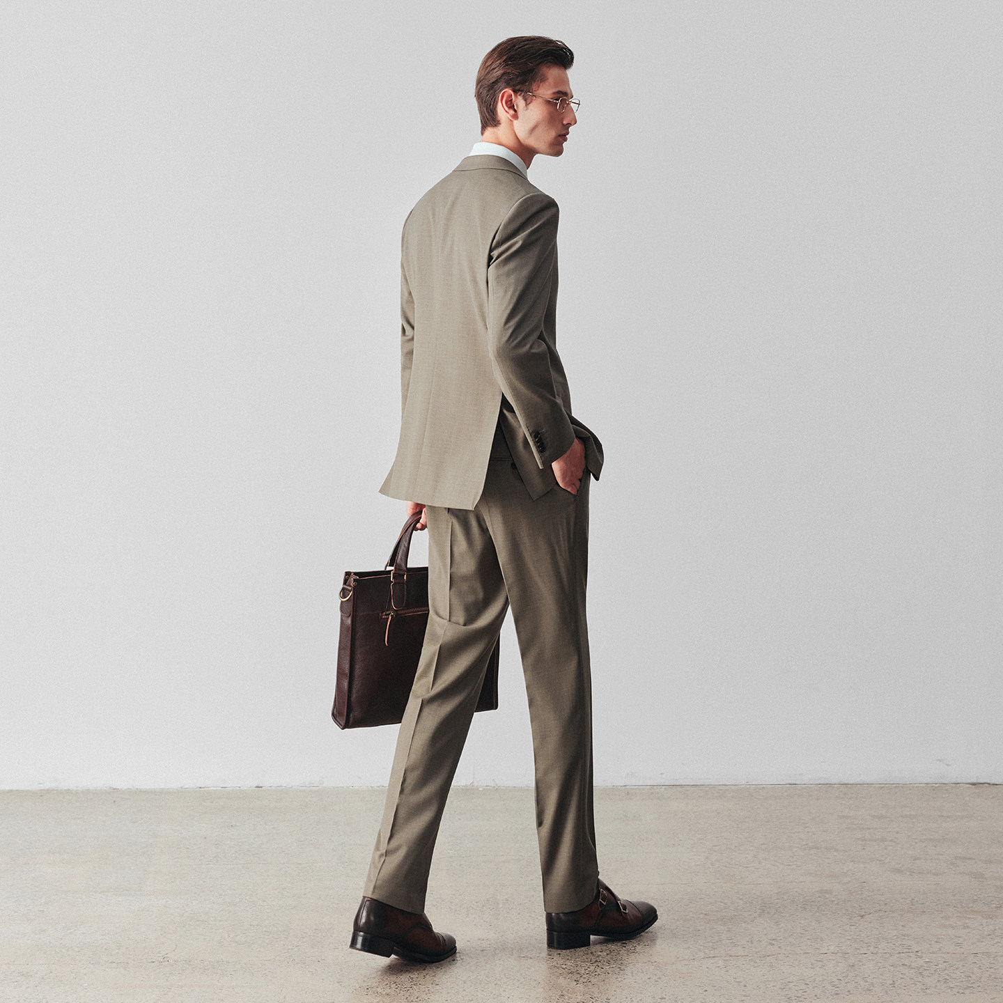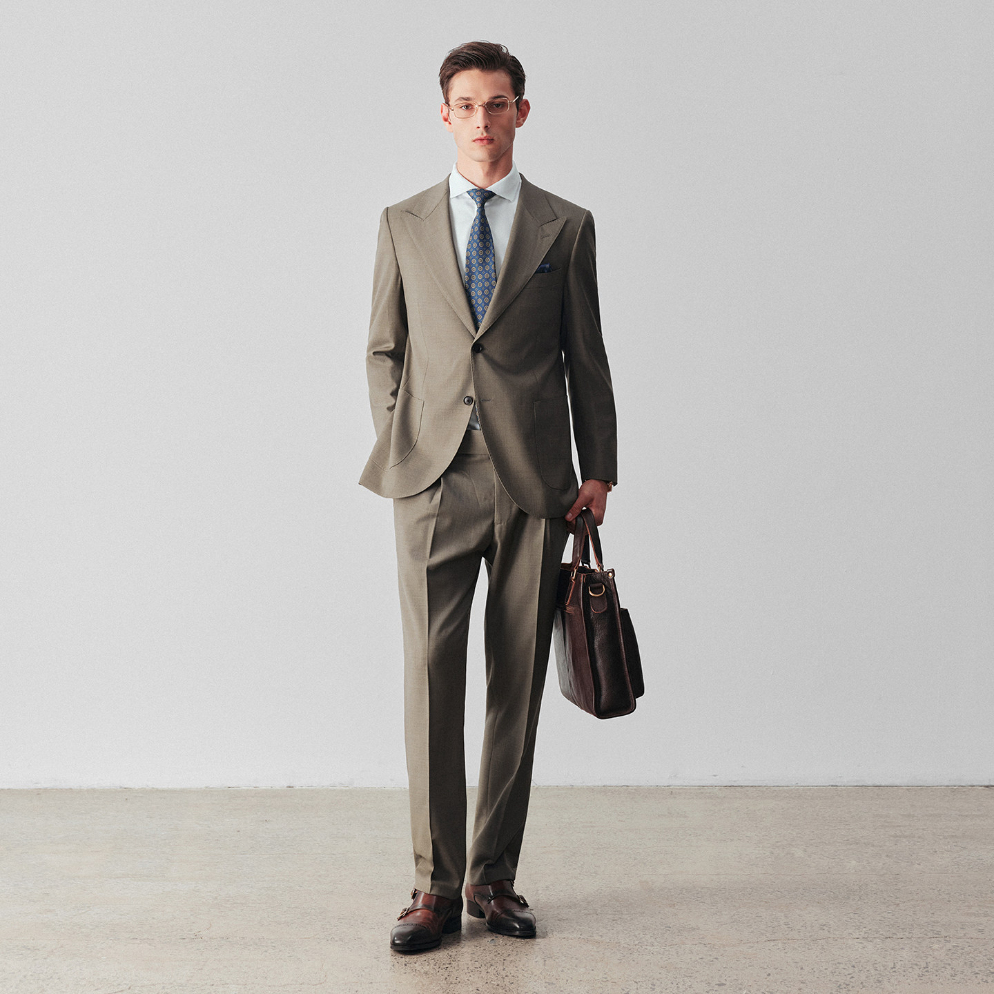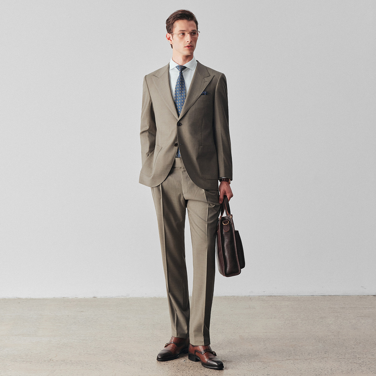 柏品高支纯羊毛商务西服套装男修身半麻衬正装职业新郎结婚礼西装