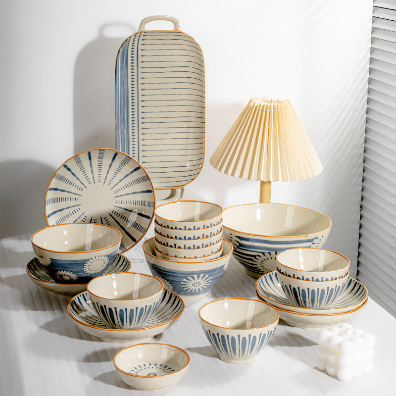 汤盘饭菜碟餐具碗盘釉下彩碗碟套装碗家用新款侘寂复古中古风乔迁