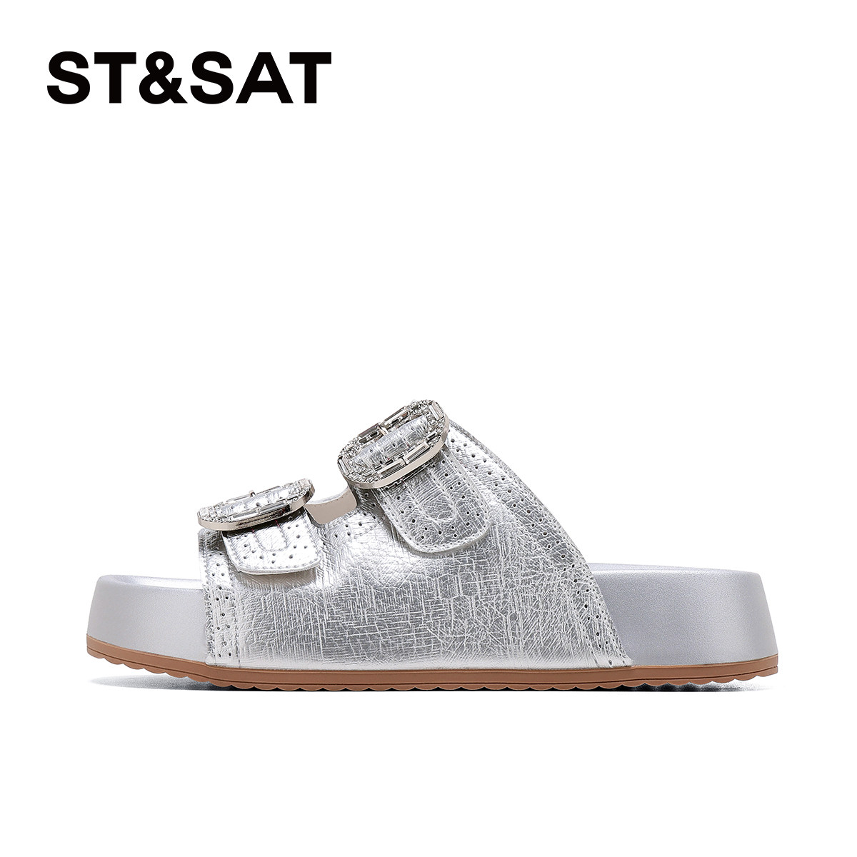 真皮!踩屎感~勃肯凉拖鞋女夏外穿厚底增高休闲百搭水钻一字凉鞋