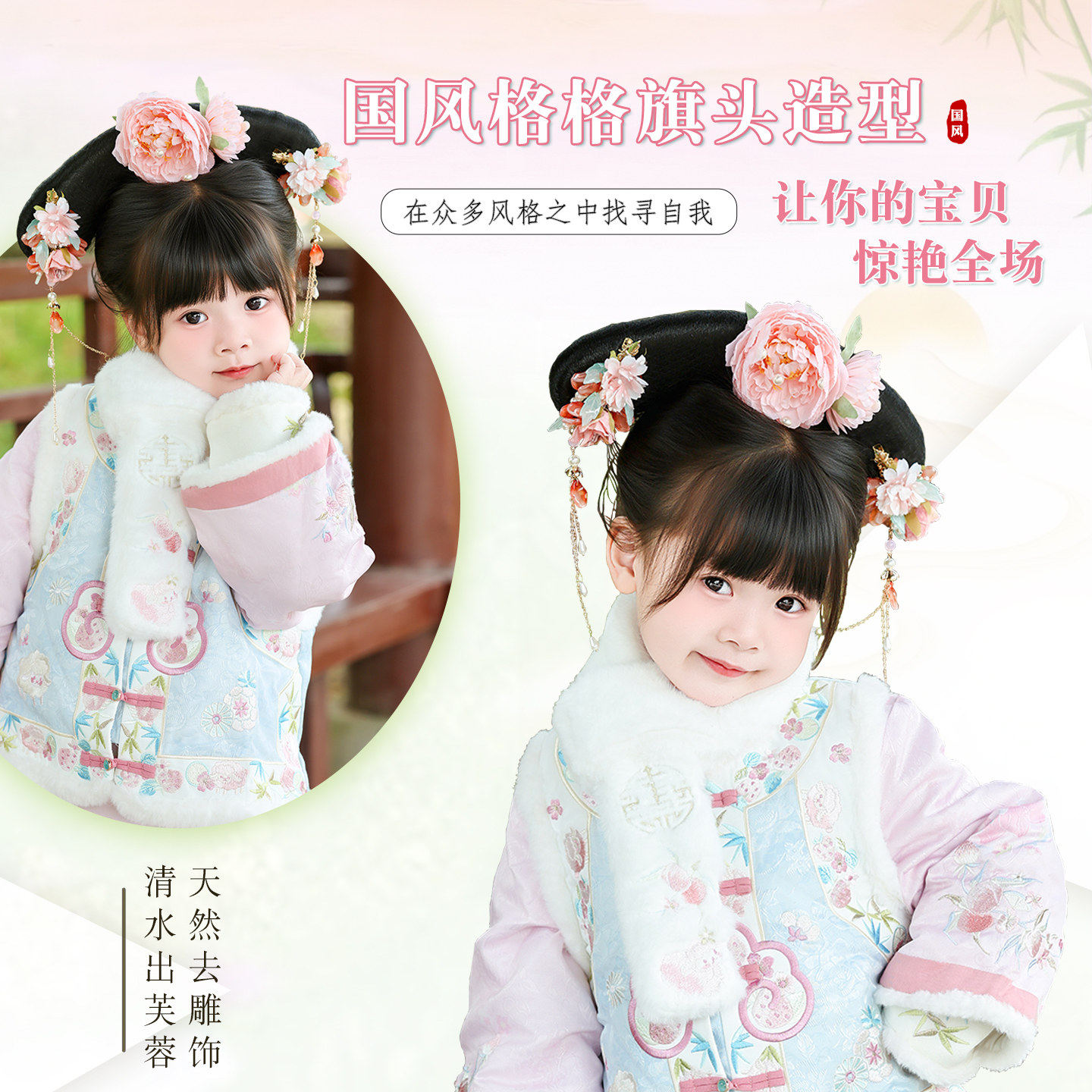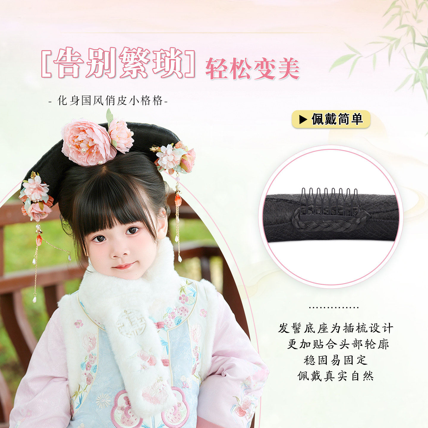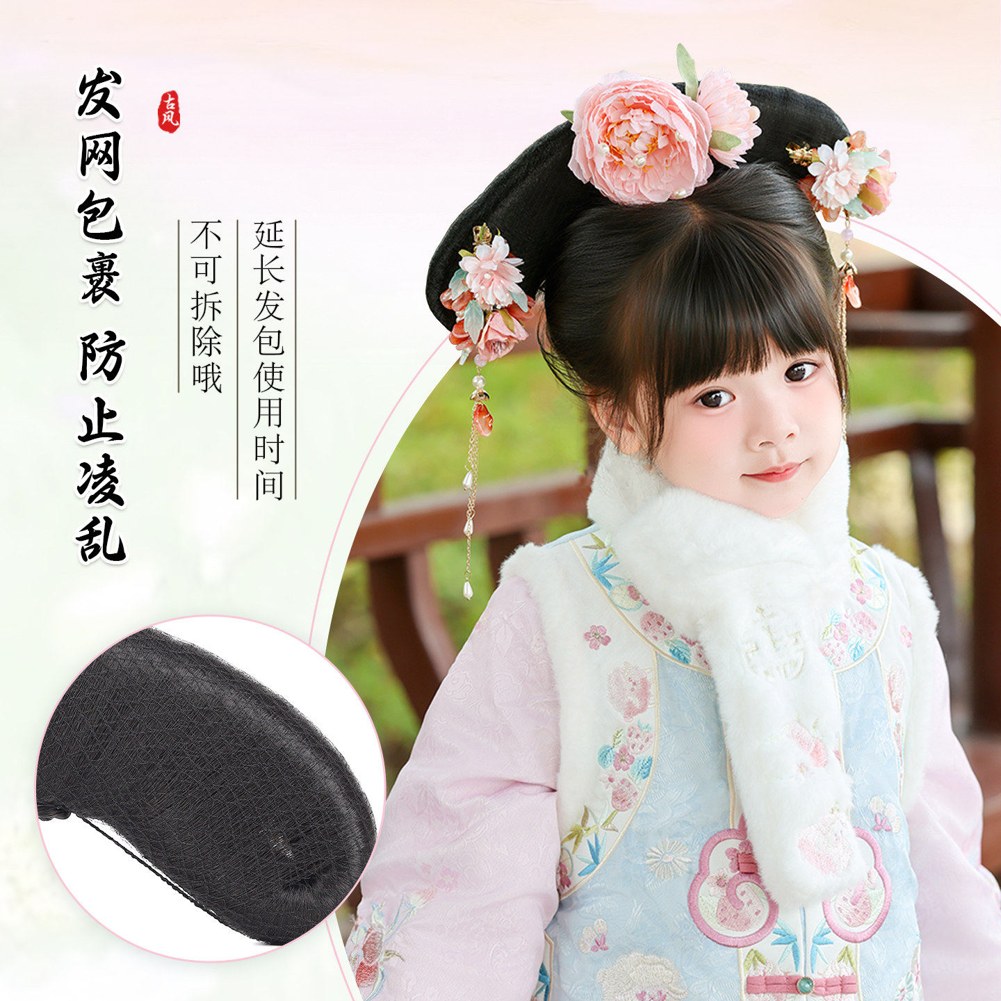 儿童古风汉服发包清朝格格旗头燕尾发型古装女童假发头饰盘发发髻