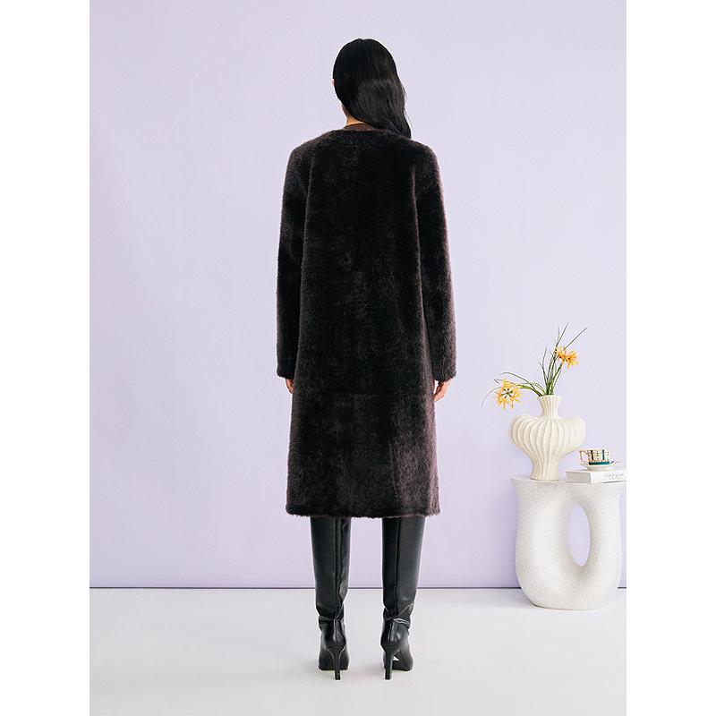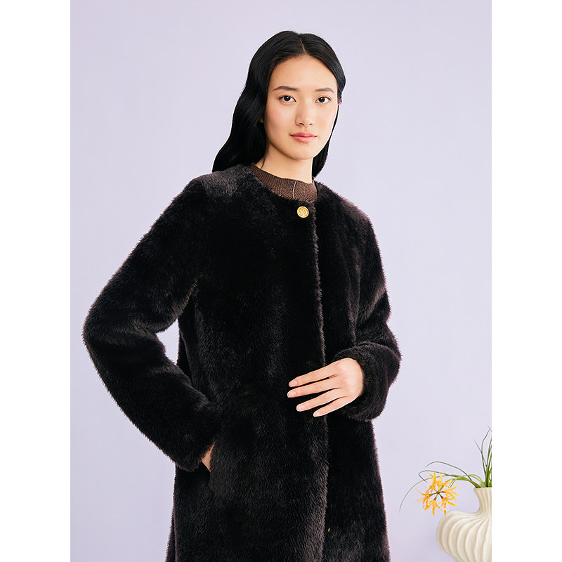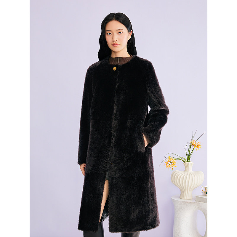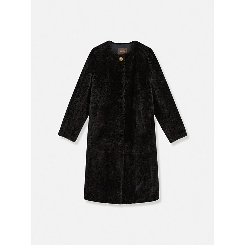 YINER音儿专选2026春季新款长款圆领奢感羊皮毛一体皮草外套