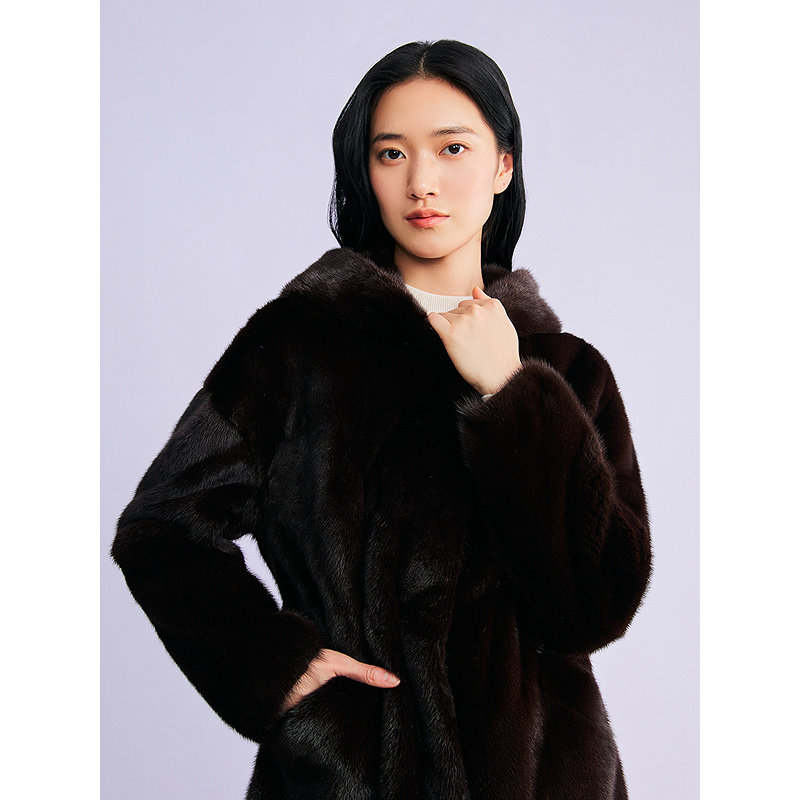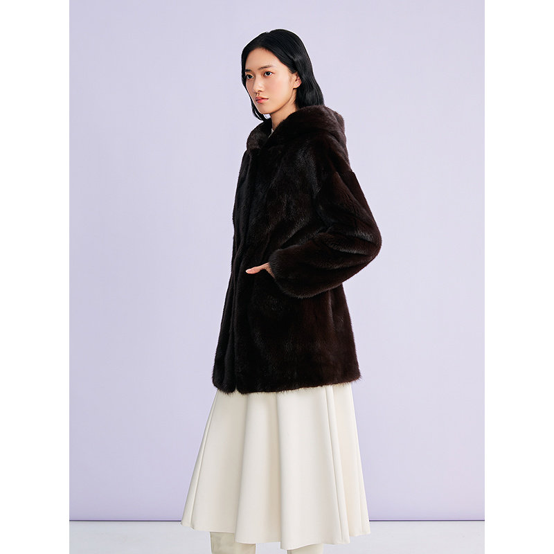 YINER音儿专选2026春季新款法式奢感一手长连帽水貂毛皮草外套