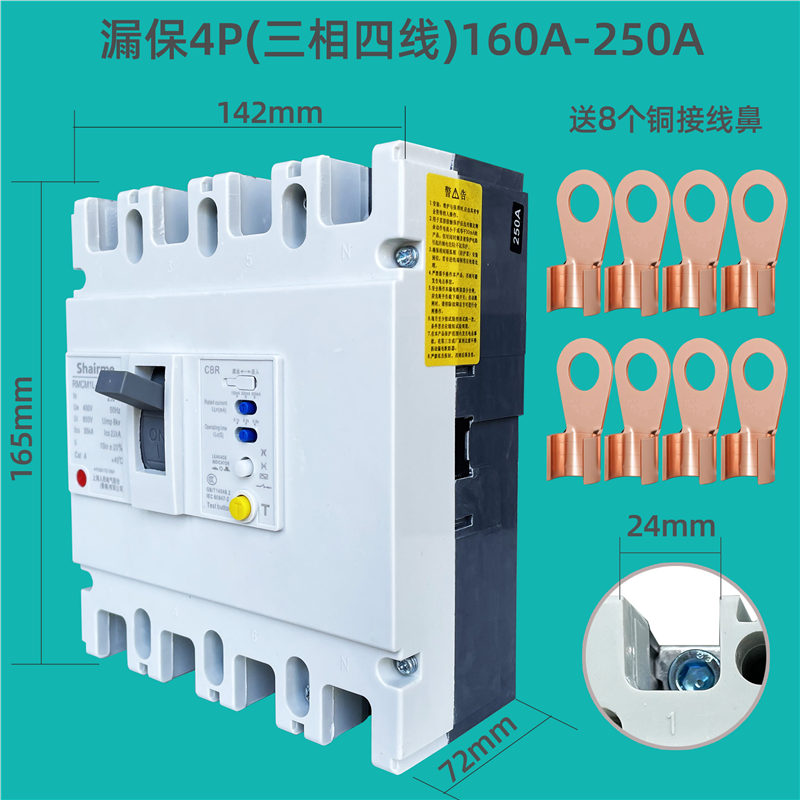 上海人民CM1L塑壳漏电保护断路器空开带漏保三相四线125A250A630A