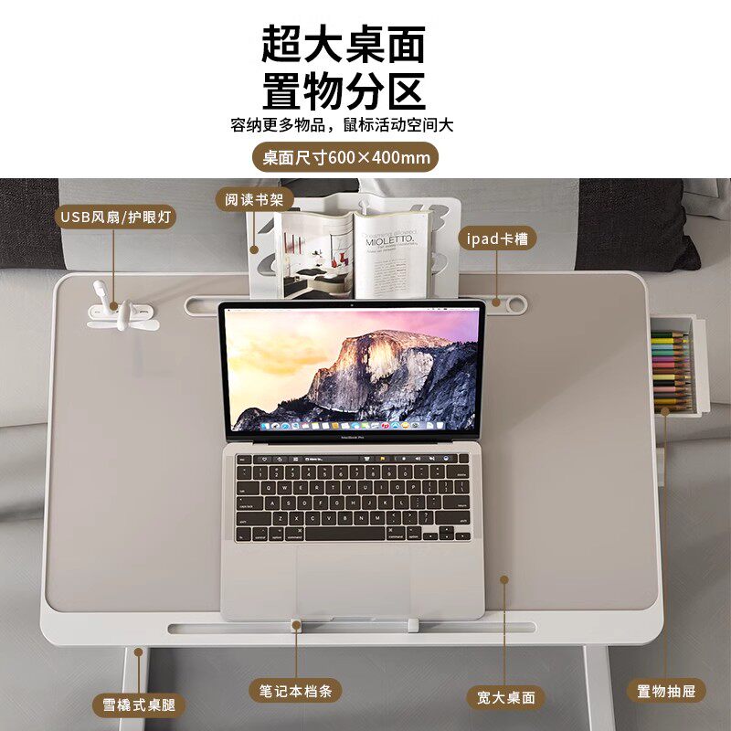 可升降折叠床上小桌子简约宿舍学生写字床上书桌学习调节高度支架家用卧室坐地飘窗懒人笔记本电脑办公小桌板