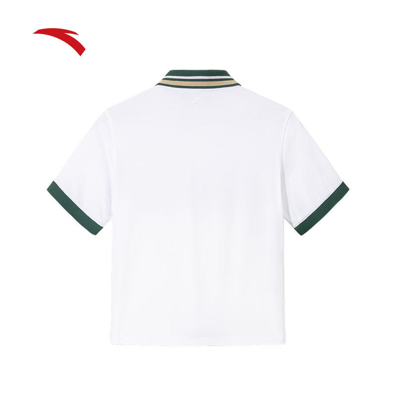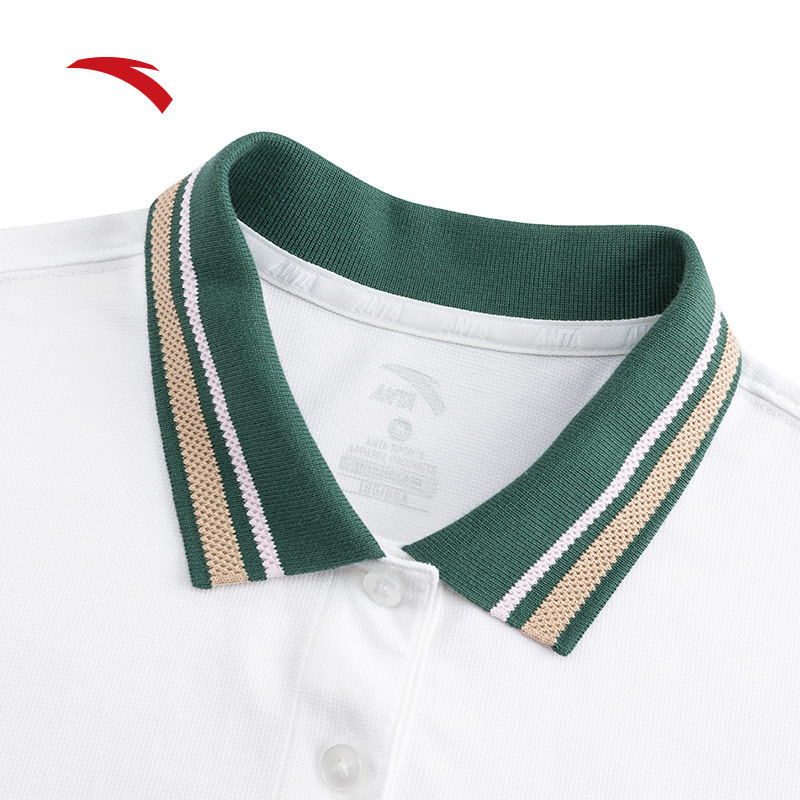 安踏学院风短袖polo衫女款夏季撞色翻领t恤休闲运动上衣162528157