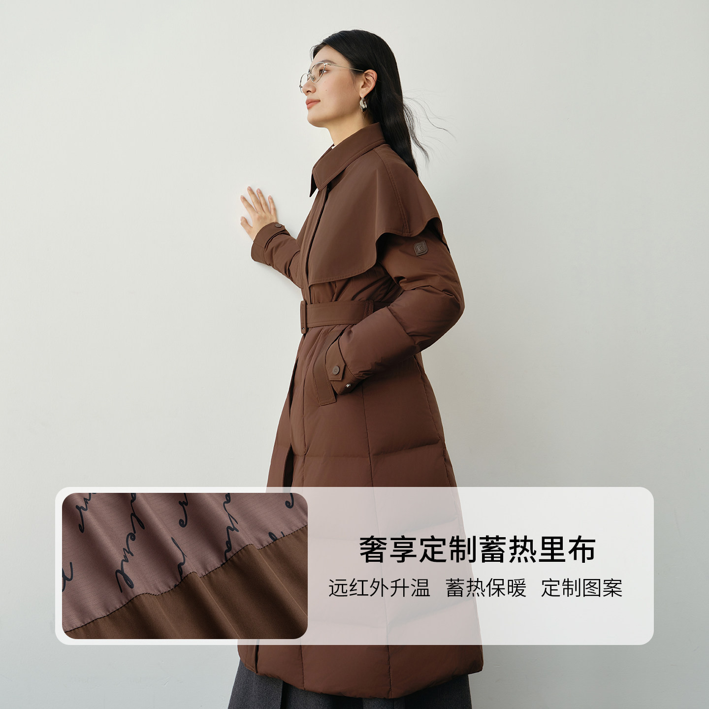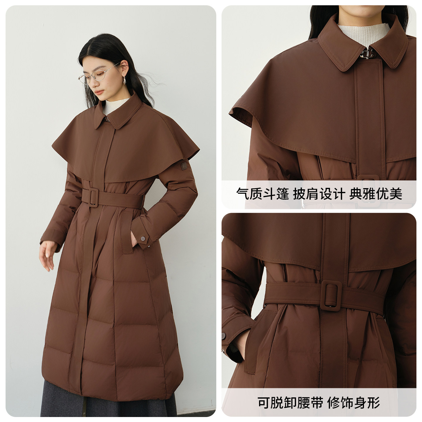 艾莱依时尚斗篷鹅绒服冬女新款大气A字下摆时尚腰带风衣气质外套