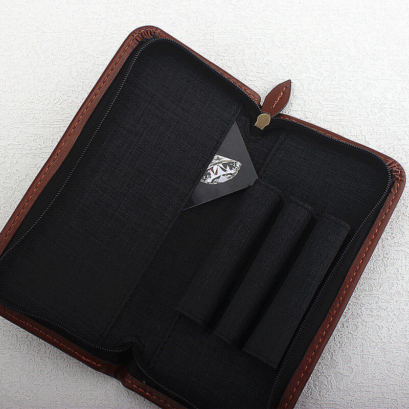 新款3支装钢笔皮包手工制作拉链钢笔收纳笔袋男士办公便携笔袋