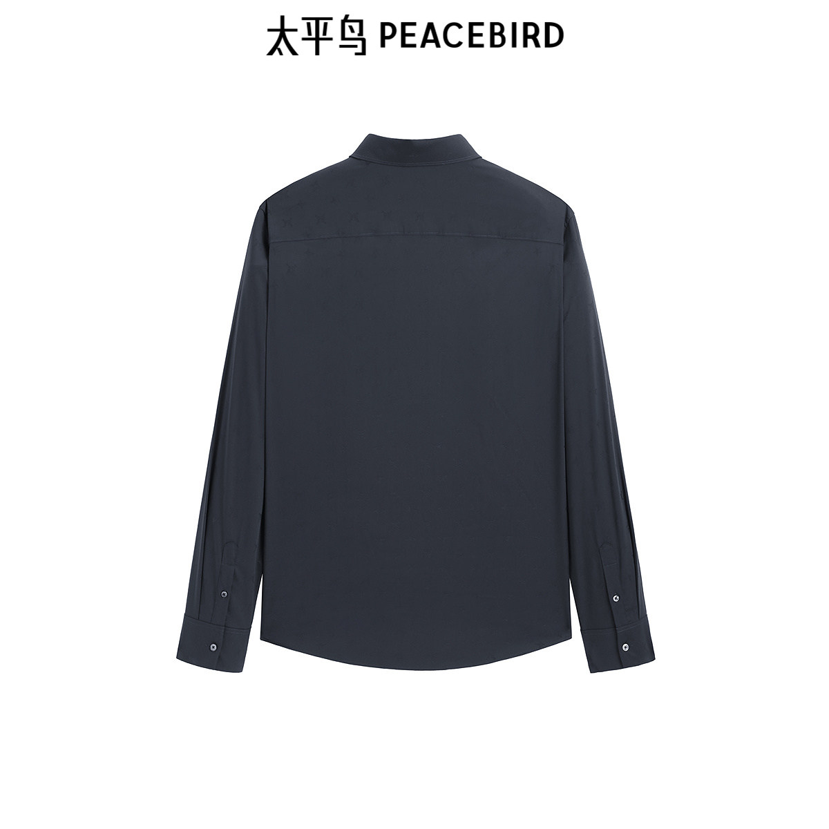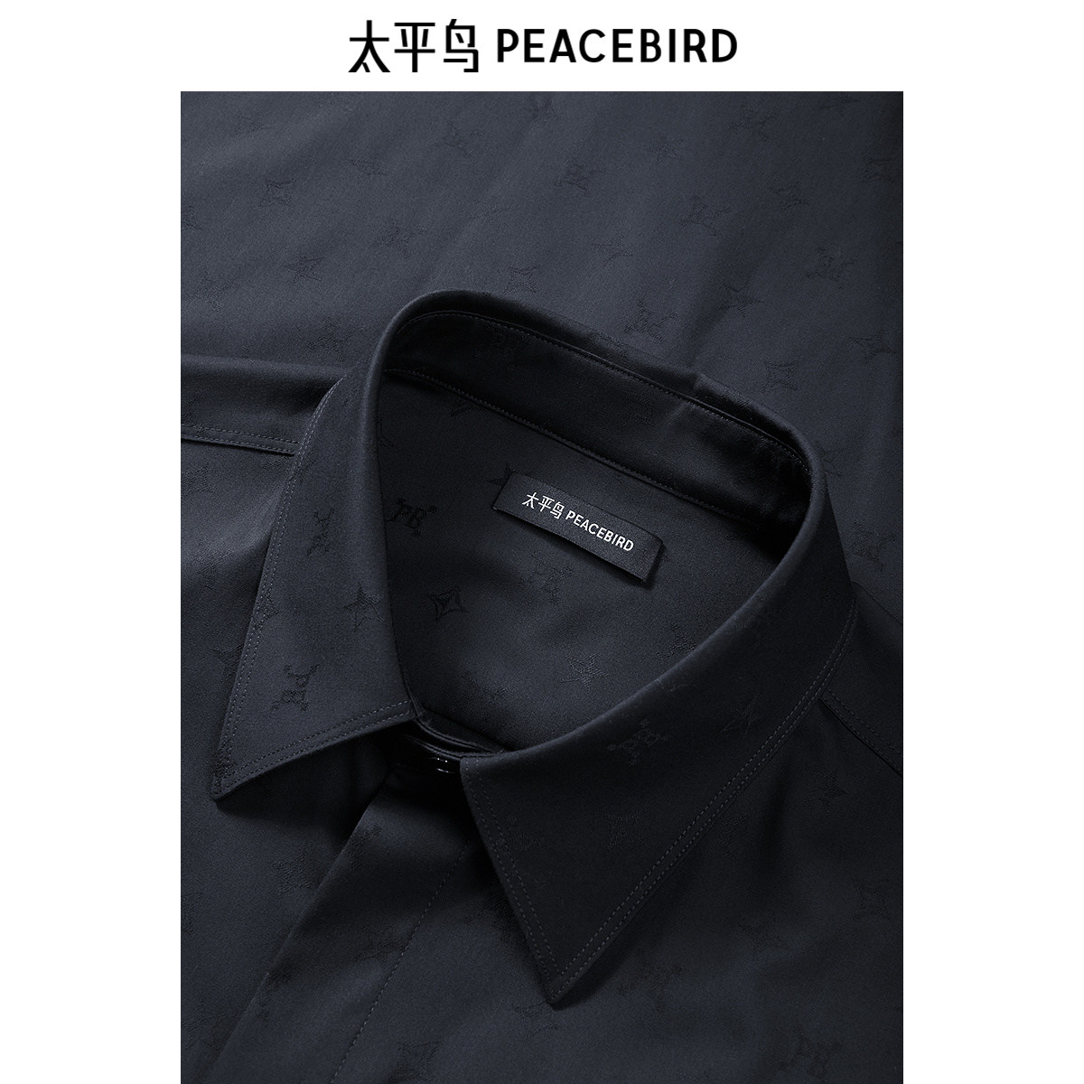 太平鸟男装 休闲衬衫男士长袖衬衫提花休闲斯文通勤衬衫翻领T恤