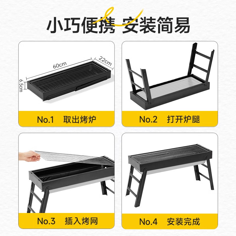 折叠烧烤炉便携式免安装一体户外架子抽屉烤肉烧烤架烤肉家用加厚