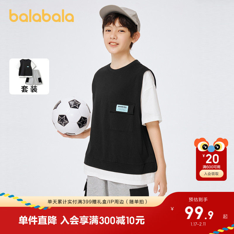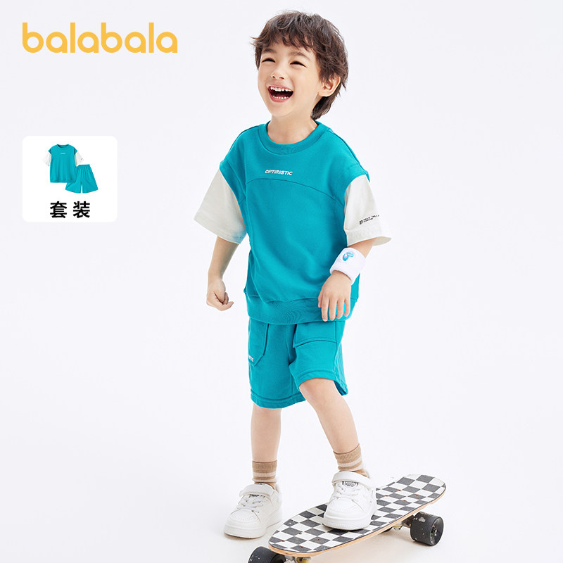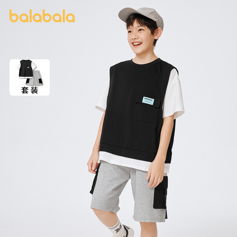 巴拉巴拉童装儿童套装夏装男大童短袖撞色亲子两件套潮酷时尚