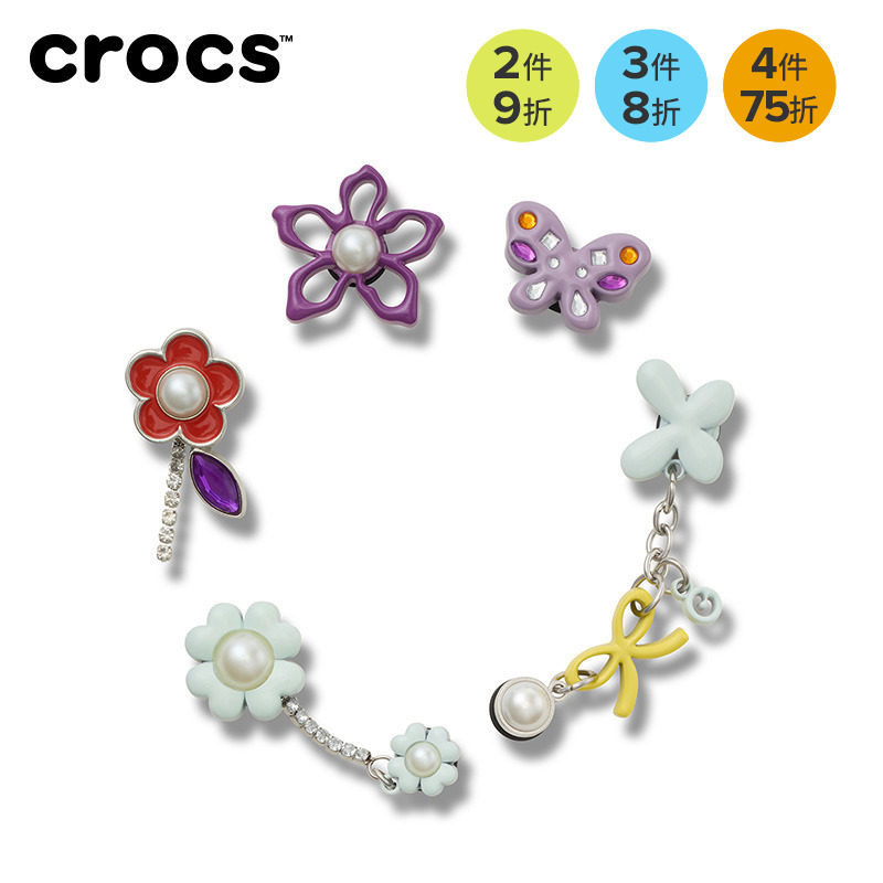 Crocs卡骆驰配饰智必星洞洞鞋鞋花 质感混搭花卉五件套