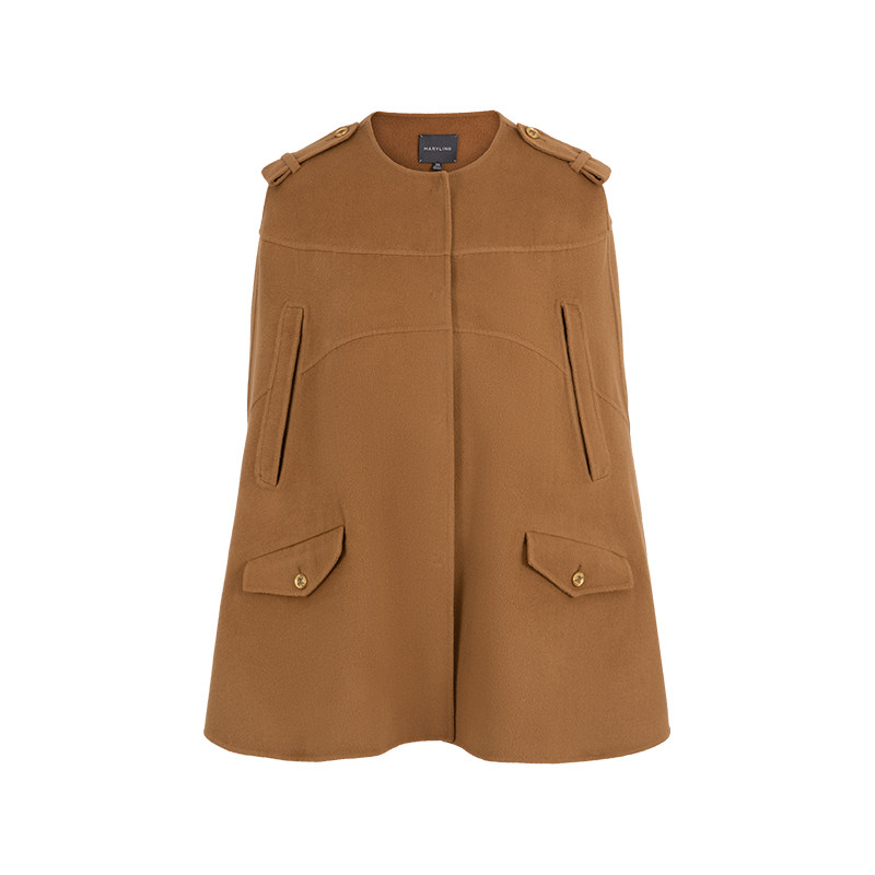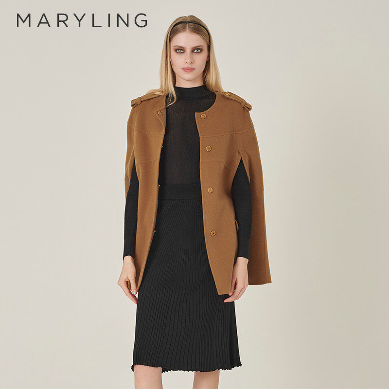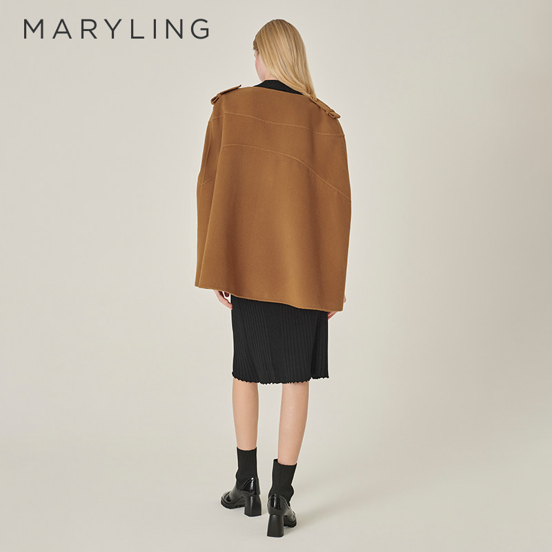 MARYLING玛俪琳冬季新品驼色丝毛小圆领斗篷外套A1EHW90090