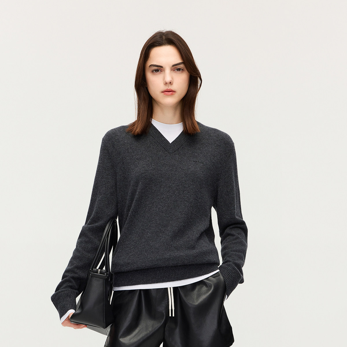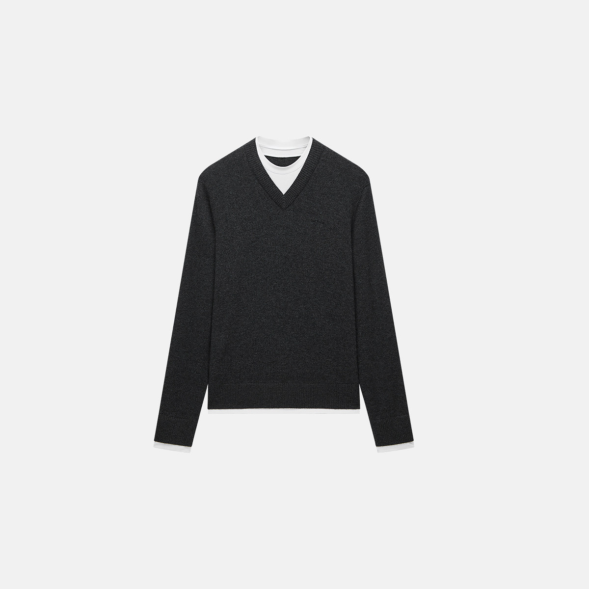 OCHIRLY欧时力 100%羊毛假两件毛衣V领针织上衣内搭秋冬
