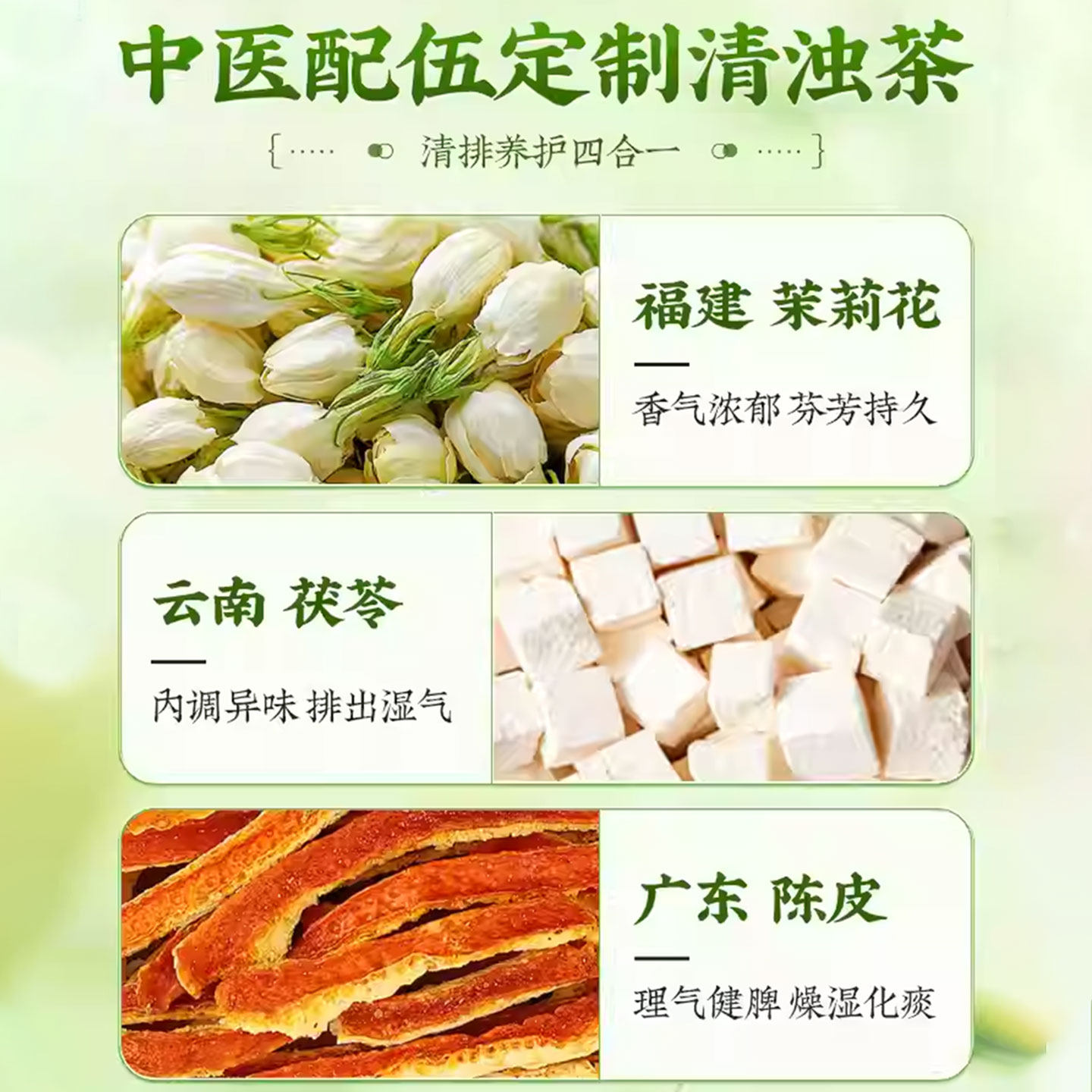 茉莉花茯苓陈皮排浊香体组合茶搭玫瑰官方正品中材药房祛湿茶饮