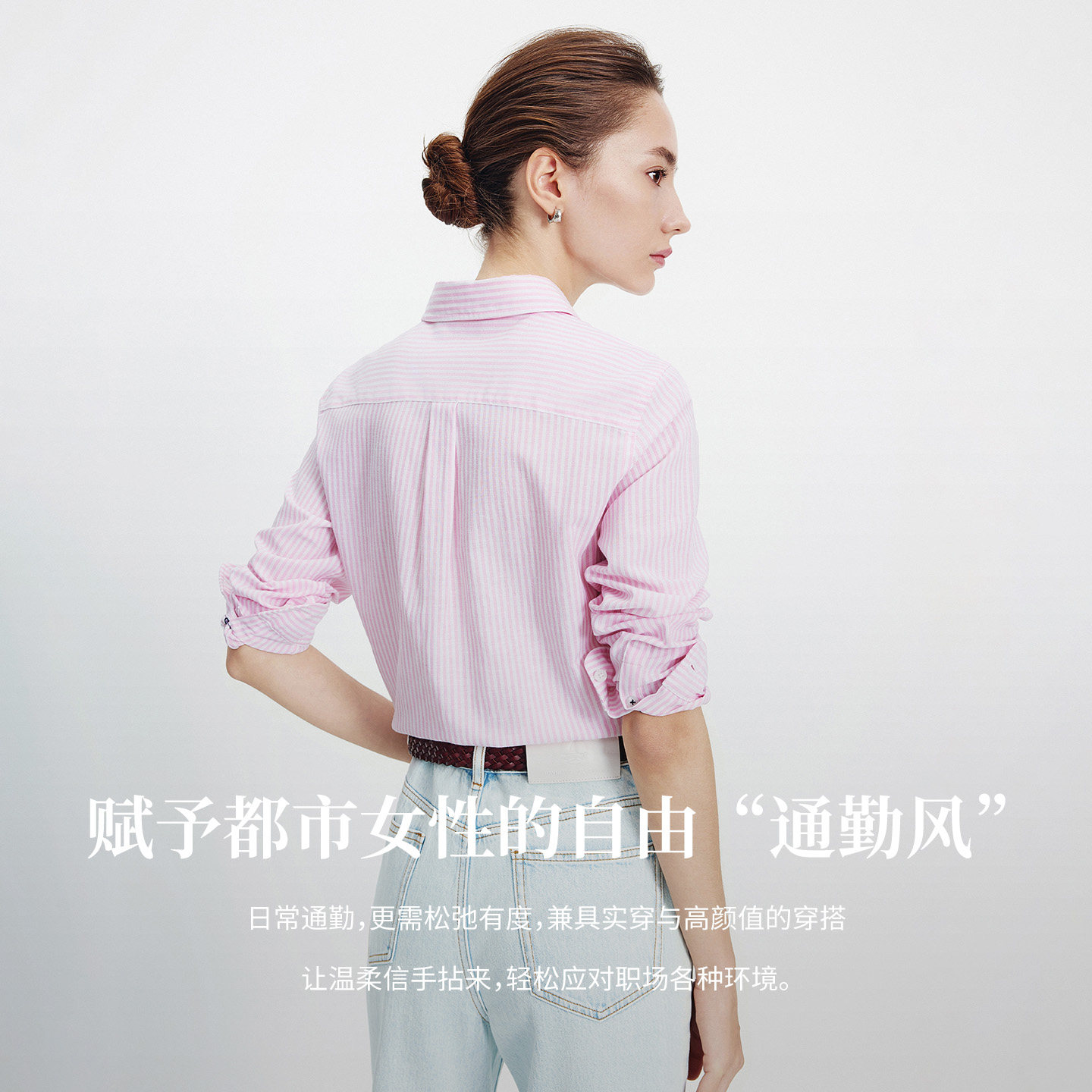 Navigare意大利小帆船粉色条纹衬衫女2026春季新款休闲长袖衬衣