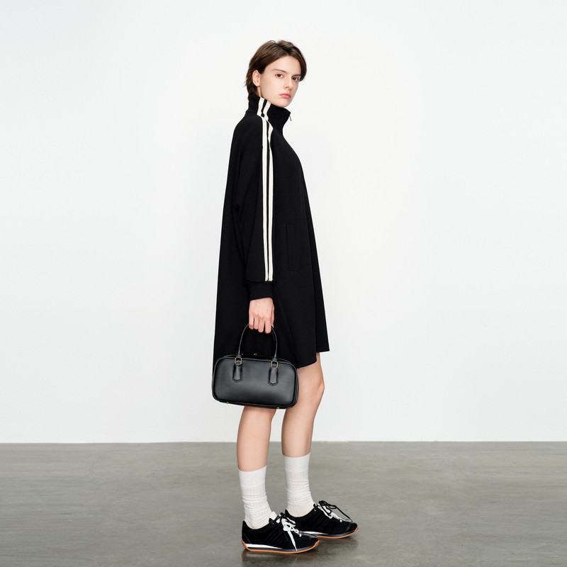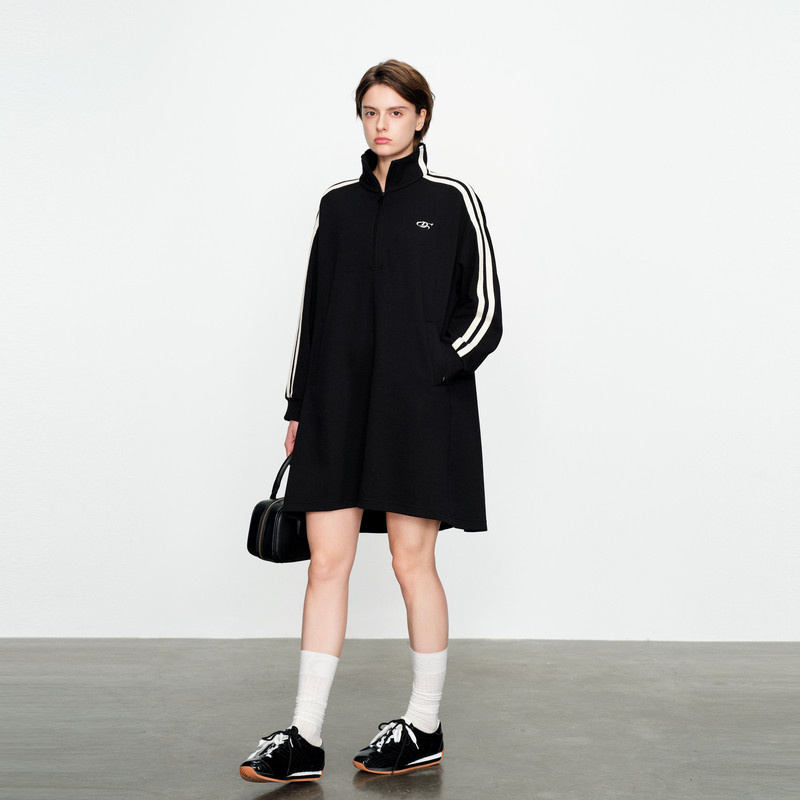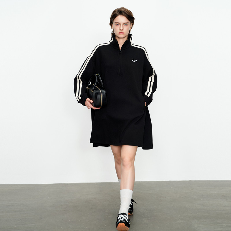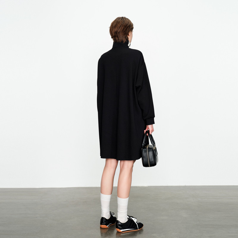 婉甸2025黑色长袖连衣裙百搭休闲款1241N10SX3