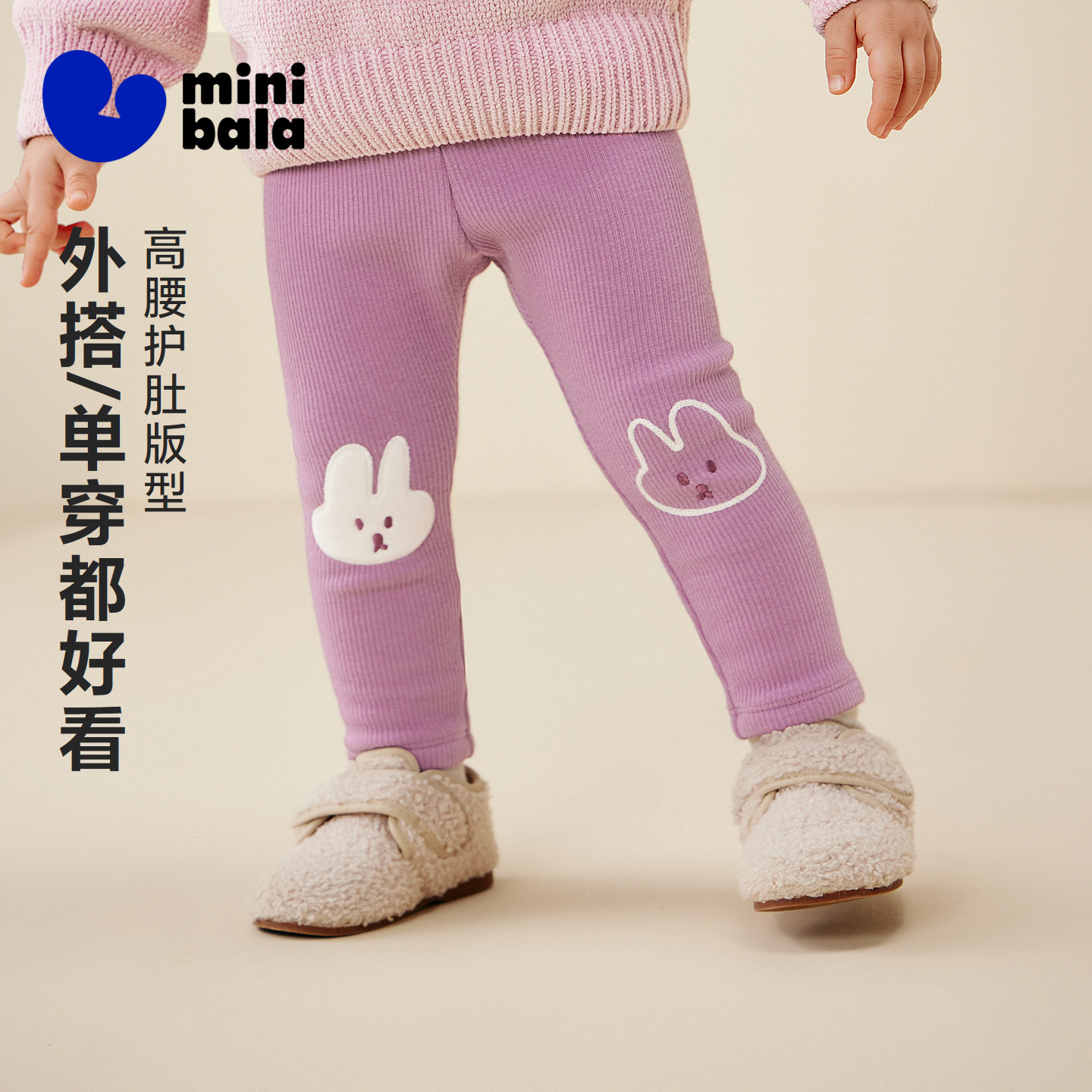 迷你巴拉巴拉女童宝宝打底裤冬新品柔软亲肤贴身高腰护肚裤子
