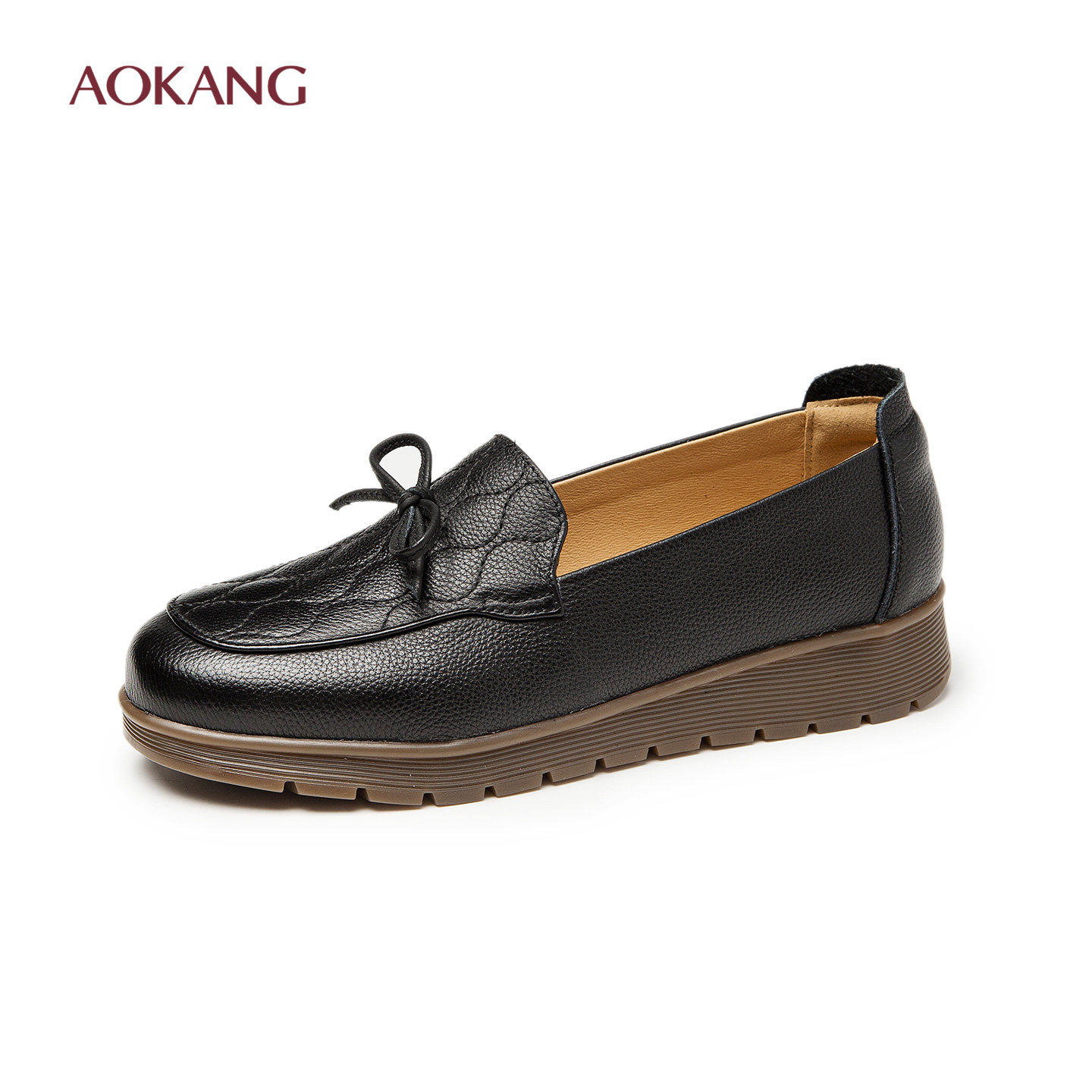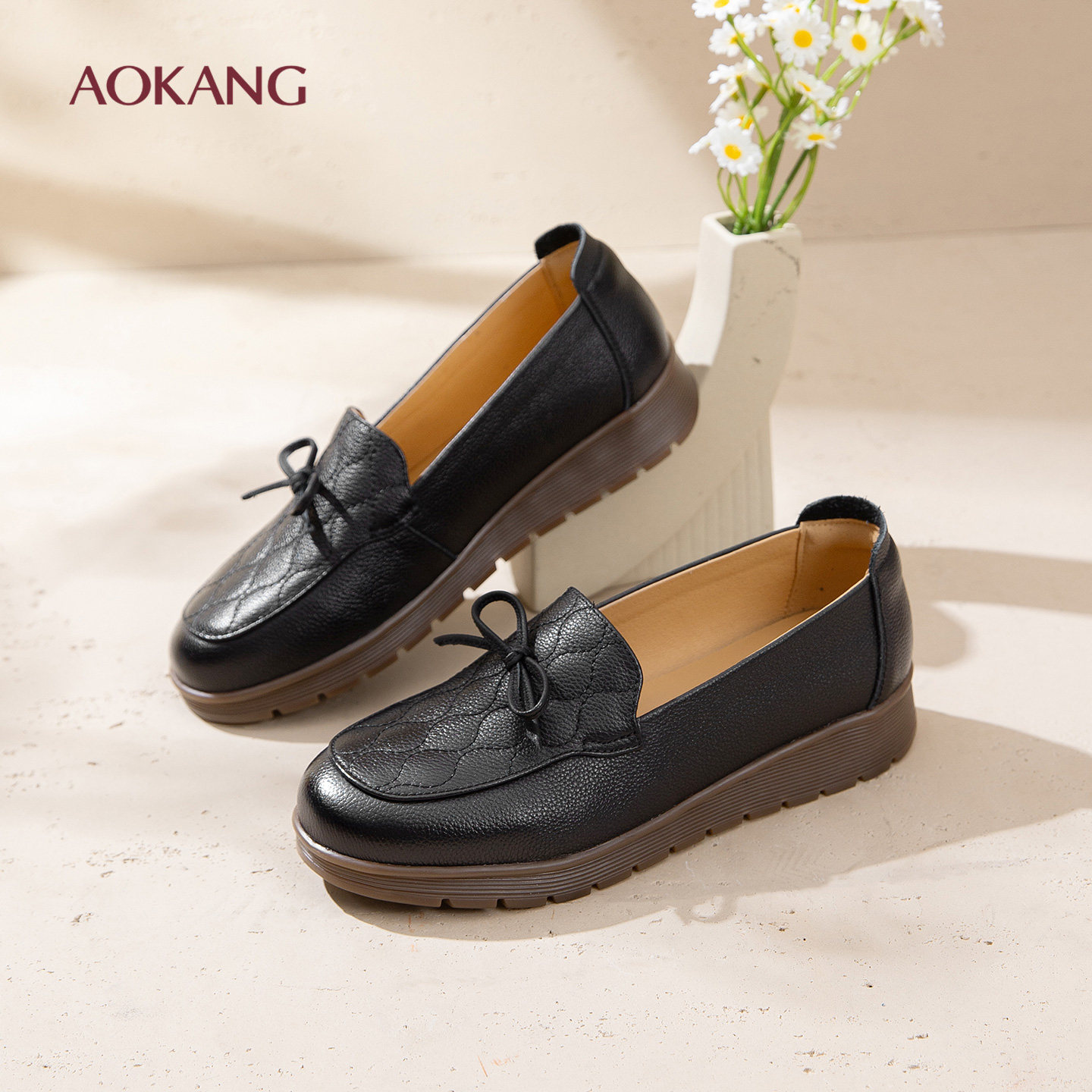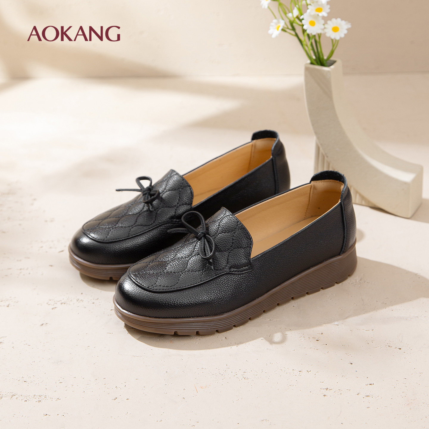 奥康 女鞋2026春季新款真皮软底乐福鞋休闲妈妈鞋浅口单鞋N