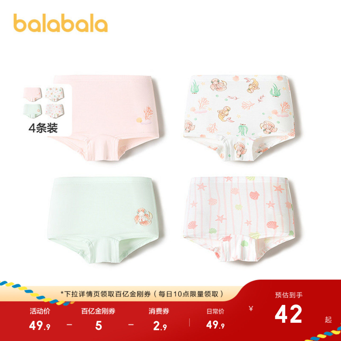 巴拉巴拉儿童内裤棉平角四角短裤女童防走光宝宝莫代尔柔软四条装