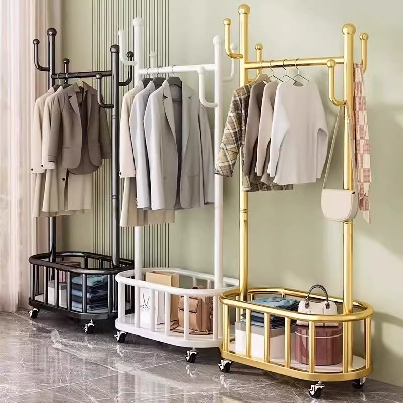 晾衣架落地家用可移动卧室凉衣架阳台挂衣服架子室内简易杆衣帽架