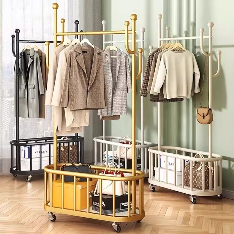 晾衣架落地家用可移动卧室美容院挂衣服架子室内阳台简易杆衣帽架