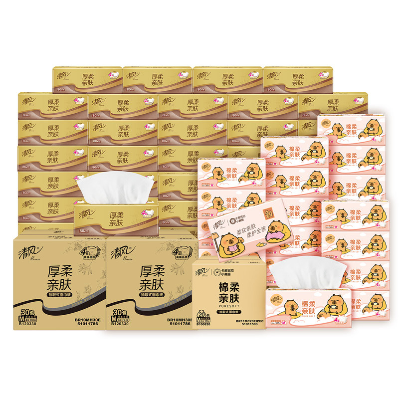 清风抽纸M码棉柔卡皮巴拉4层360张大包加厚纸巾餐巾纸抽面巾纸by