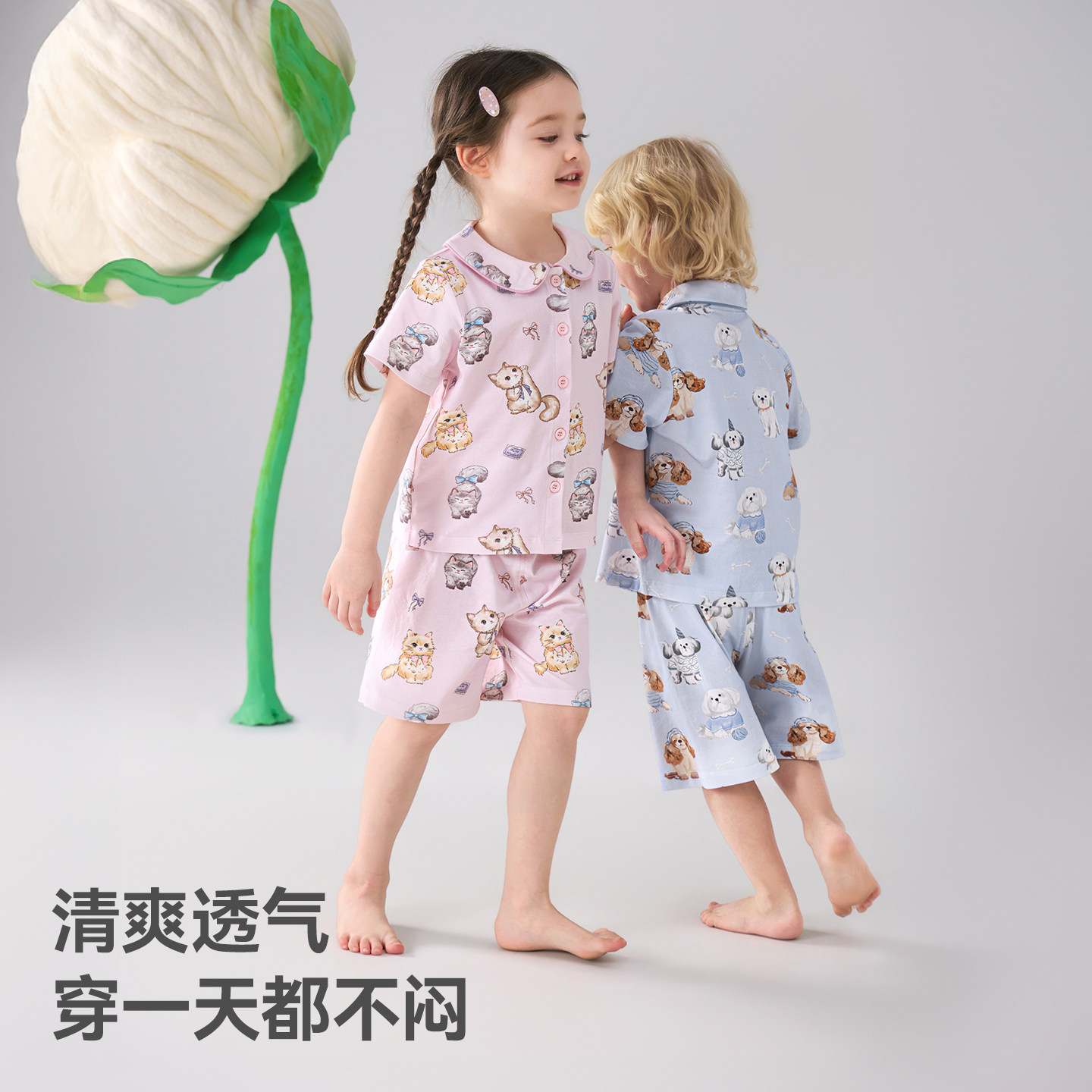 贝肽斯女童睡衣2026春夏新款纯棉透气亲子款家居服套装男童睡衣