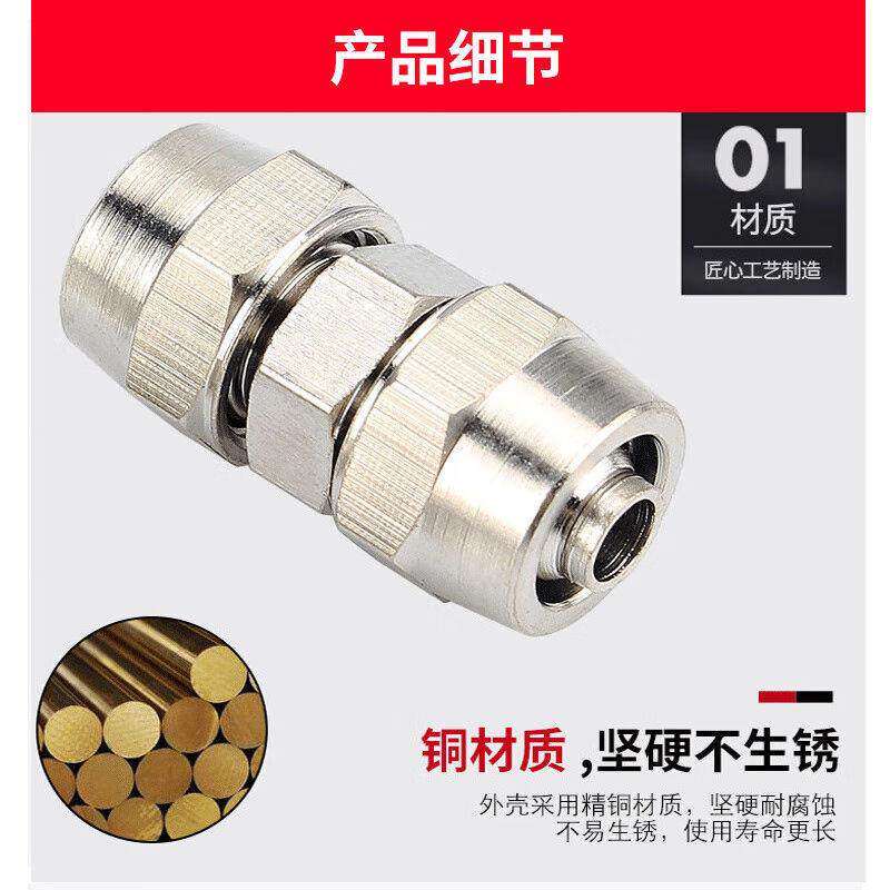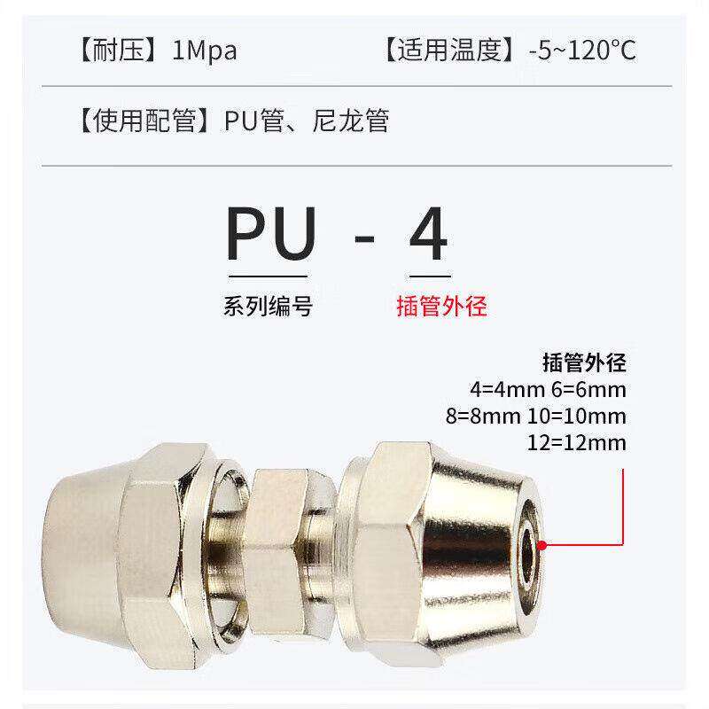 贝傅特快拧直通气动接头锁母型气动气管快插元件快拧直通PU-6