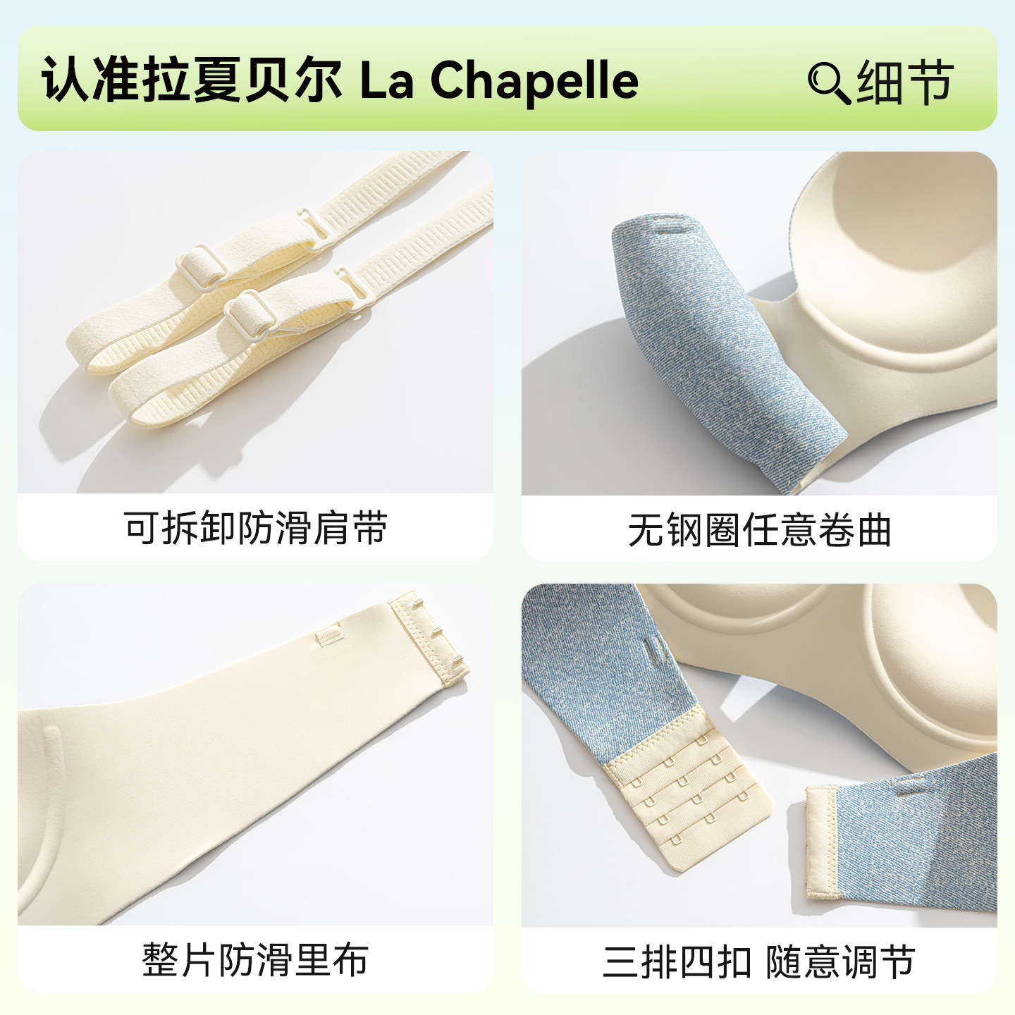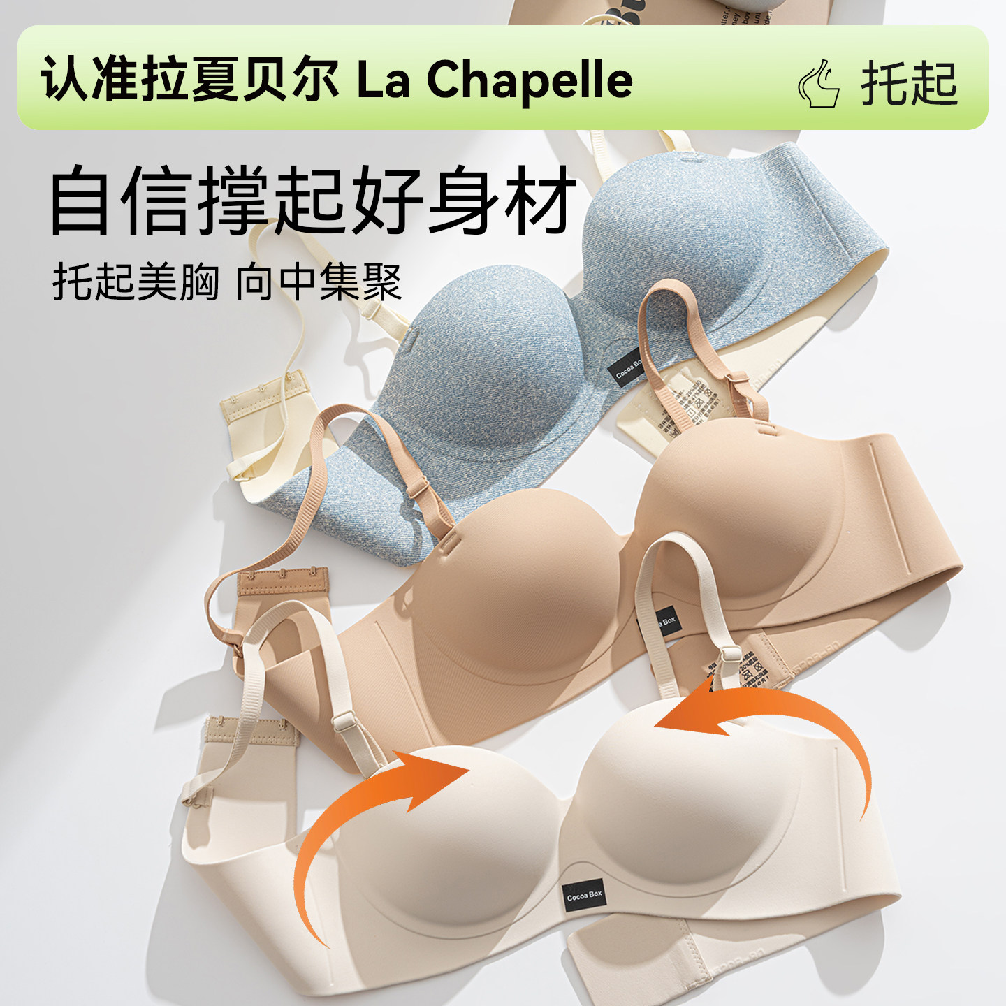 拉夏贝尔无肩带内衣女聚拢小胸显大隐形粉底液无痕美背舒适文胸罩