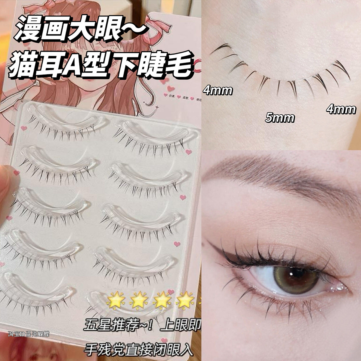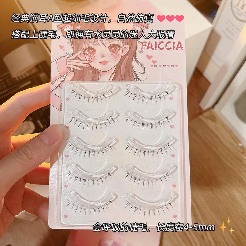 猫耳漫画下睫毛!超软A型假睫毛女自然仿真妈生透明梗整条一片式