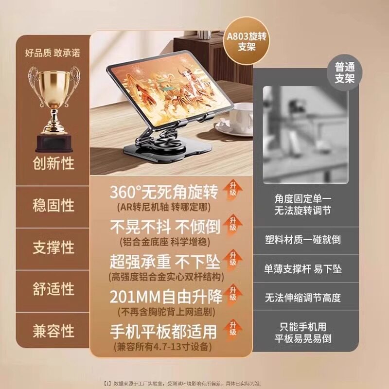 平板支架桌面手机720°旋转便捷专用铝合金碳素钢金属办公懒人架子支撑便携可折叠调节升降拍摄折叠散热底座