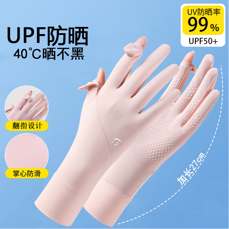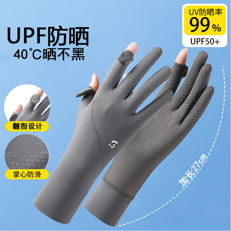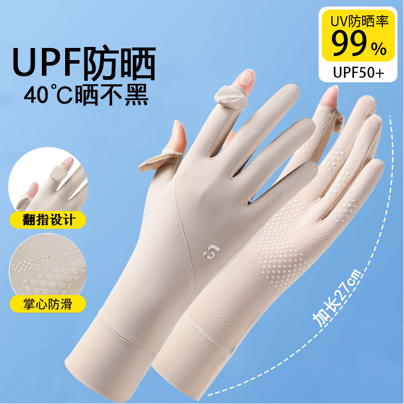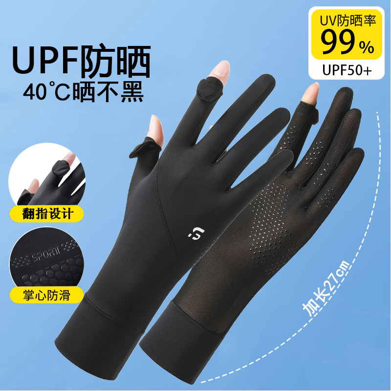 防晒手套女防紫外线夏季薄款冰丝防滑触屏骑行开车运动露二指袖套