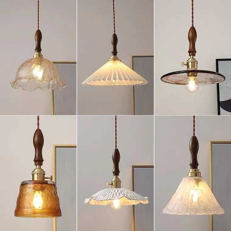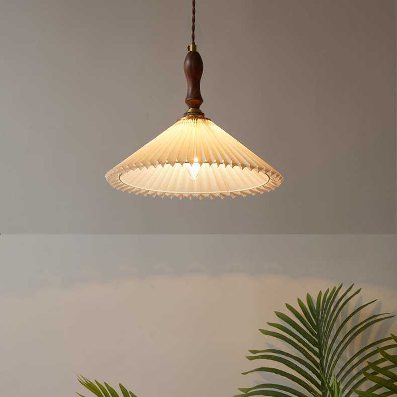 日式侘寂风百褶布艺吊灯茶室餐厅吧台床头民宿网红胡桃木小吊灯