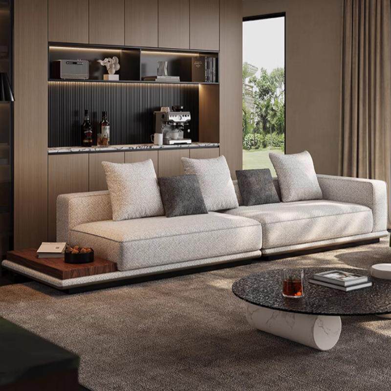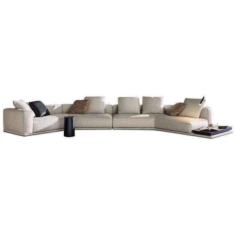 意式极简地平线沙发棉麻布艺沙发客厅别墅大户型直排弧形组合