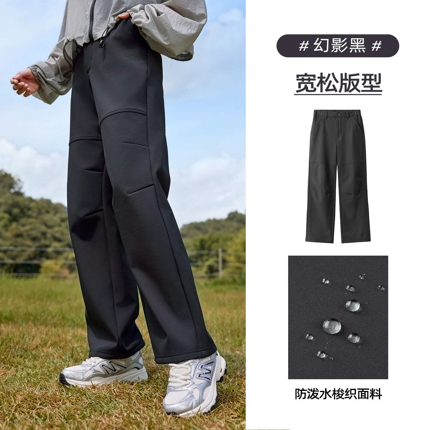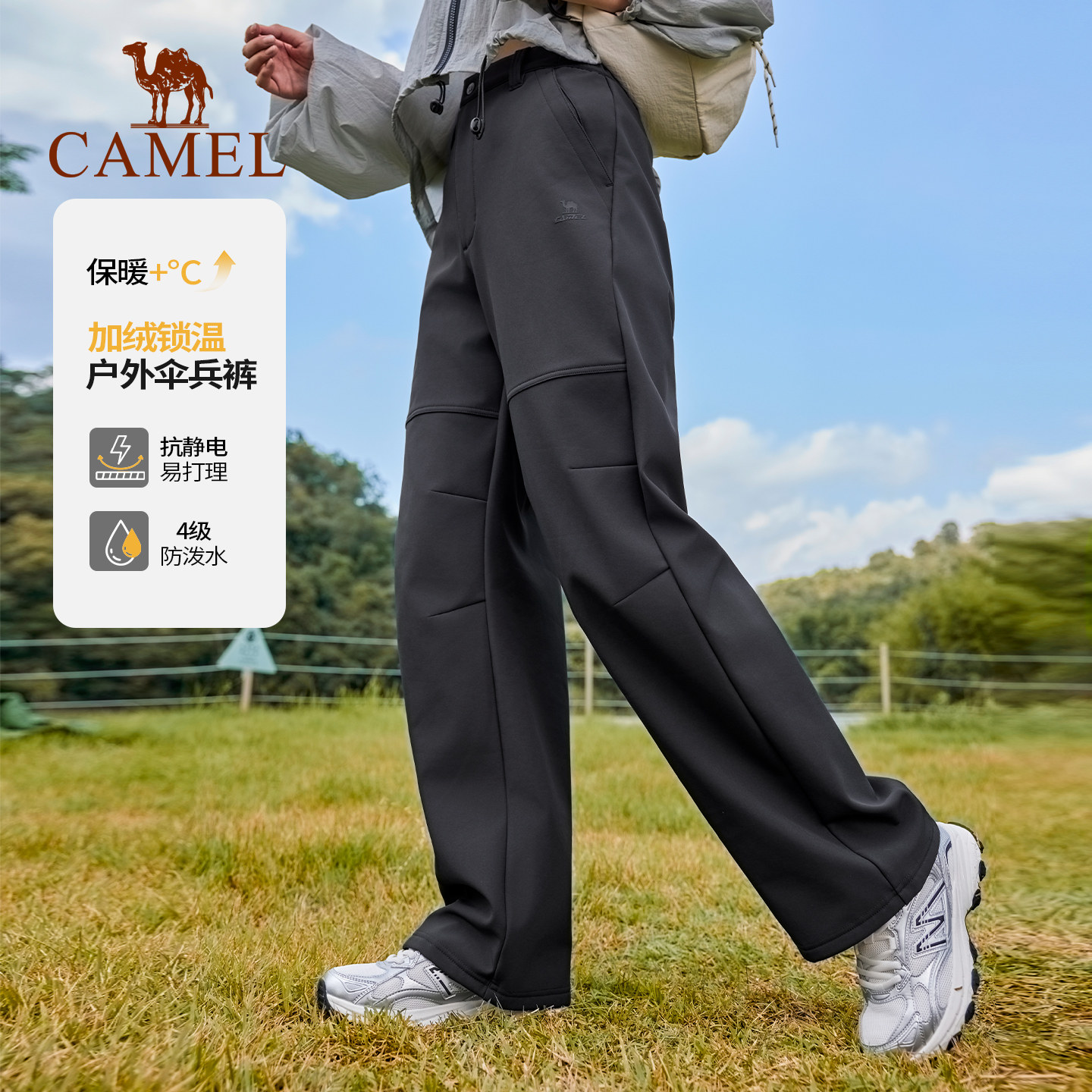 【防泼水】骆驼运动工装裤女冬季加绒休闲裤户外直筒徒步登山裤