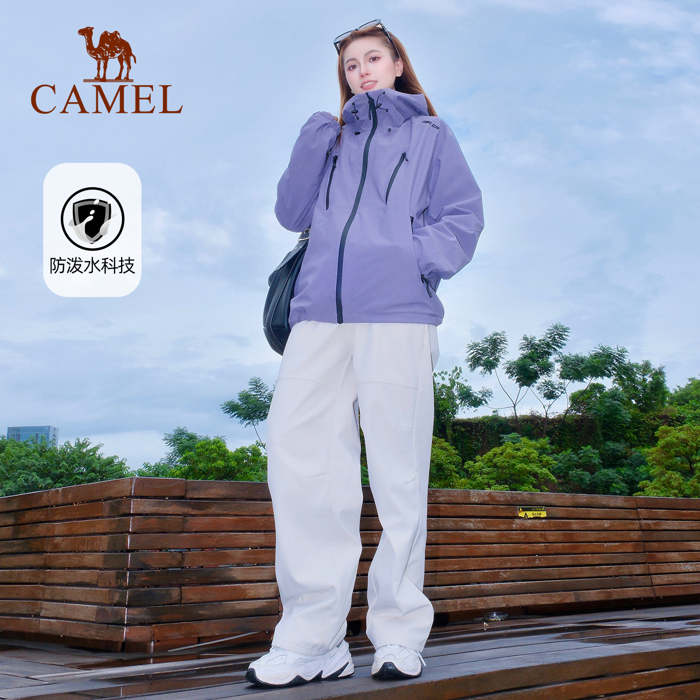 骆驼运动裤女户外伞兵裤防水防风吸湿高弹冲锋裤登山软壳裤工装裤