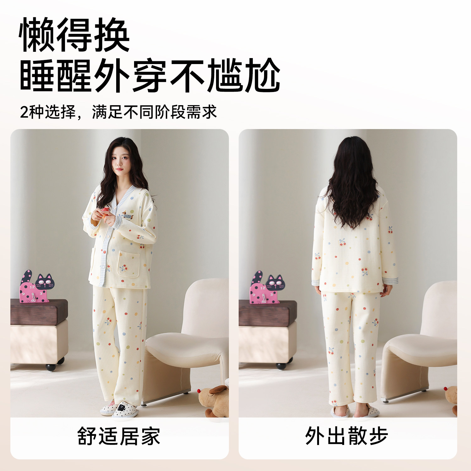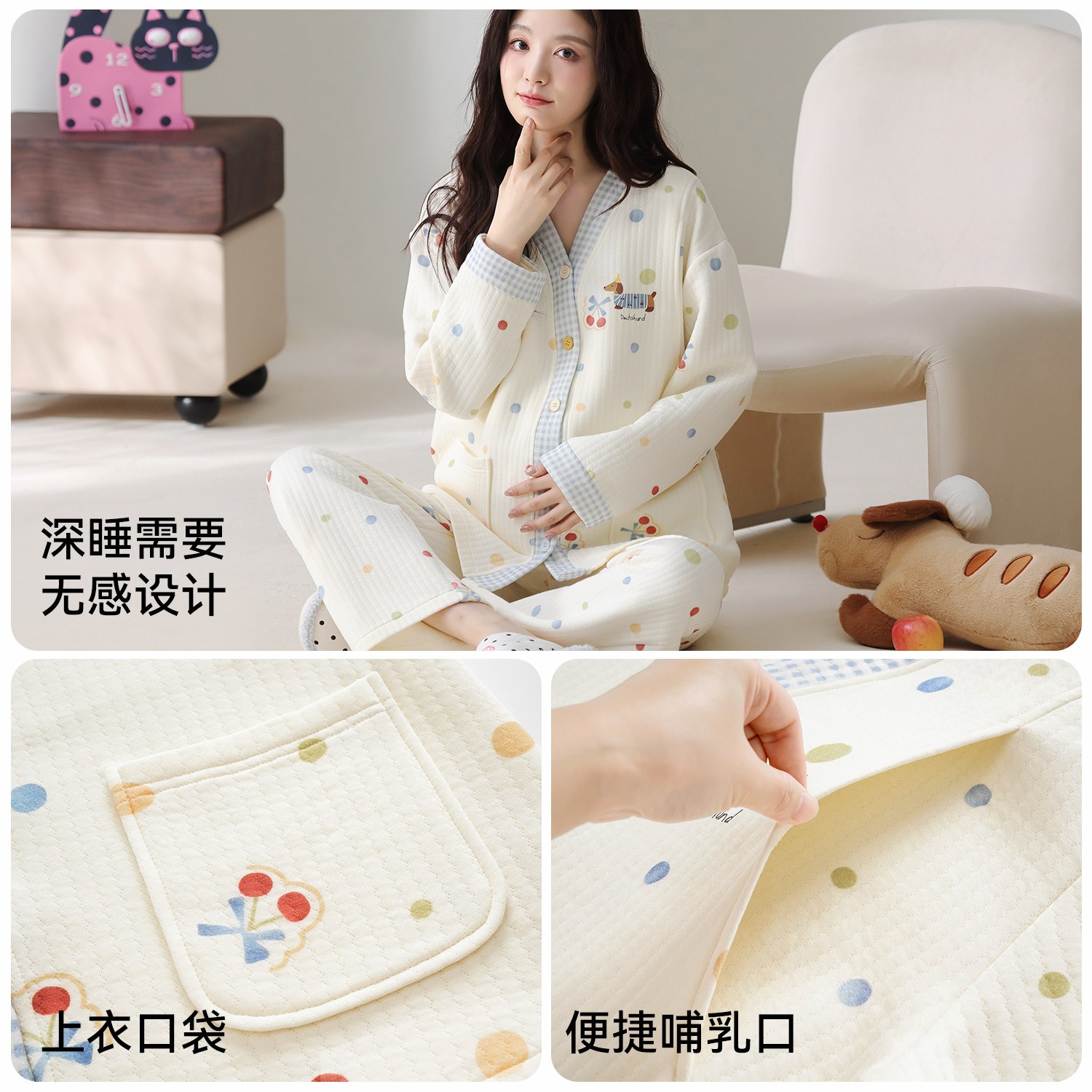 都市丽人纯棉月子服秋冬季长袖空气棉夹层保暖孕妇产后哺乳睡衣女