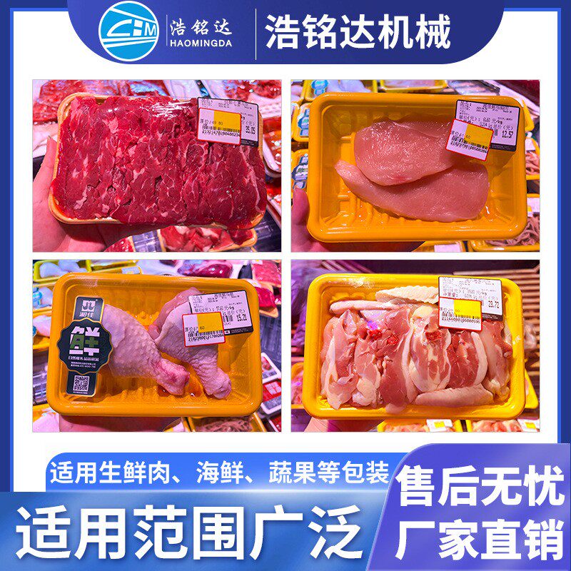 蔬菜水果保鲜膜包装机 带托盒全自动肉类果蔬生鲜保鲜膜裹膜机