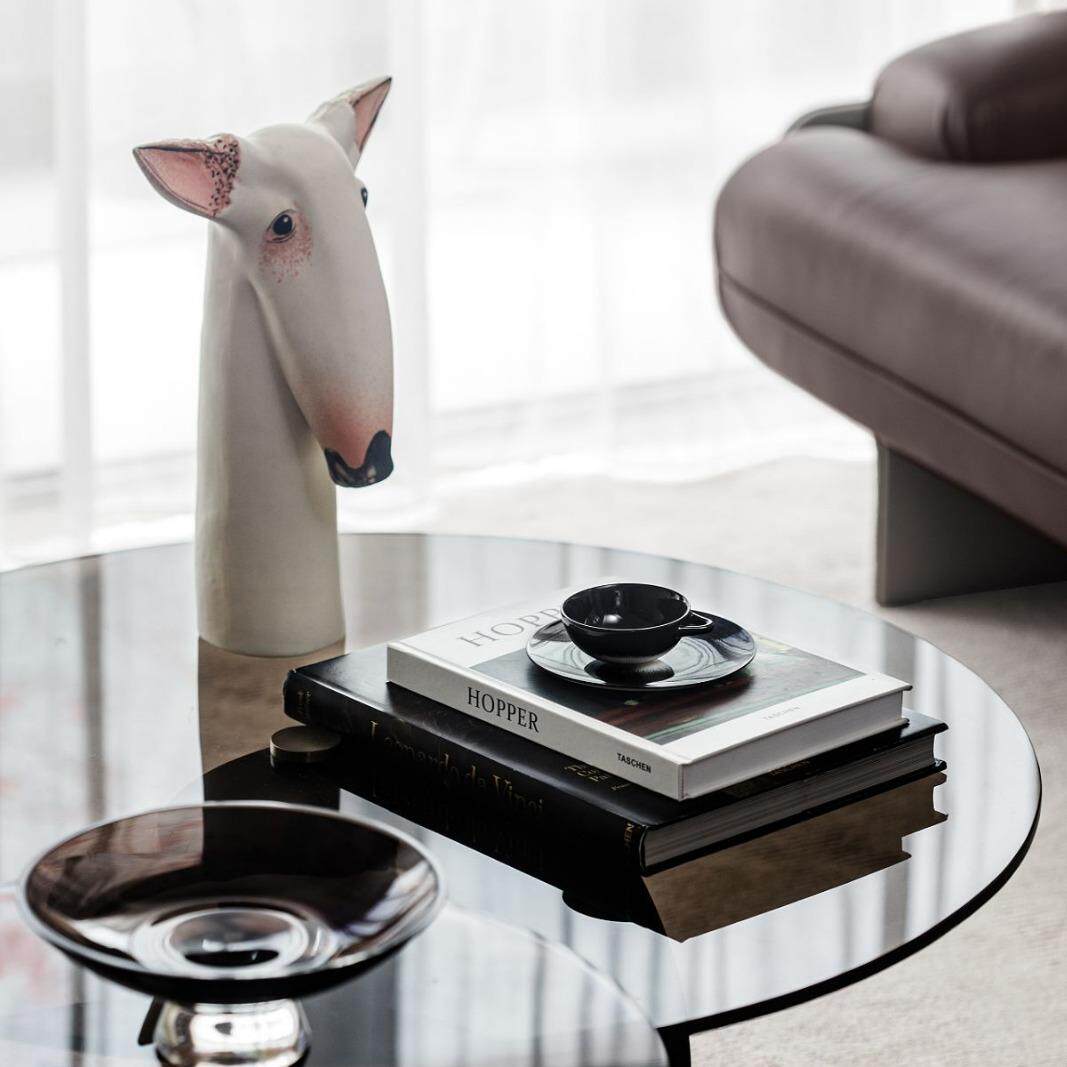 现代轻奢抽象牛头梗狗狗动物摆件样板间售楼装饰陈列家居桌面软装
