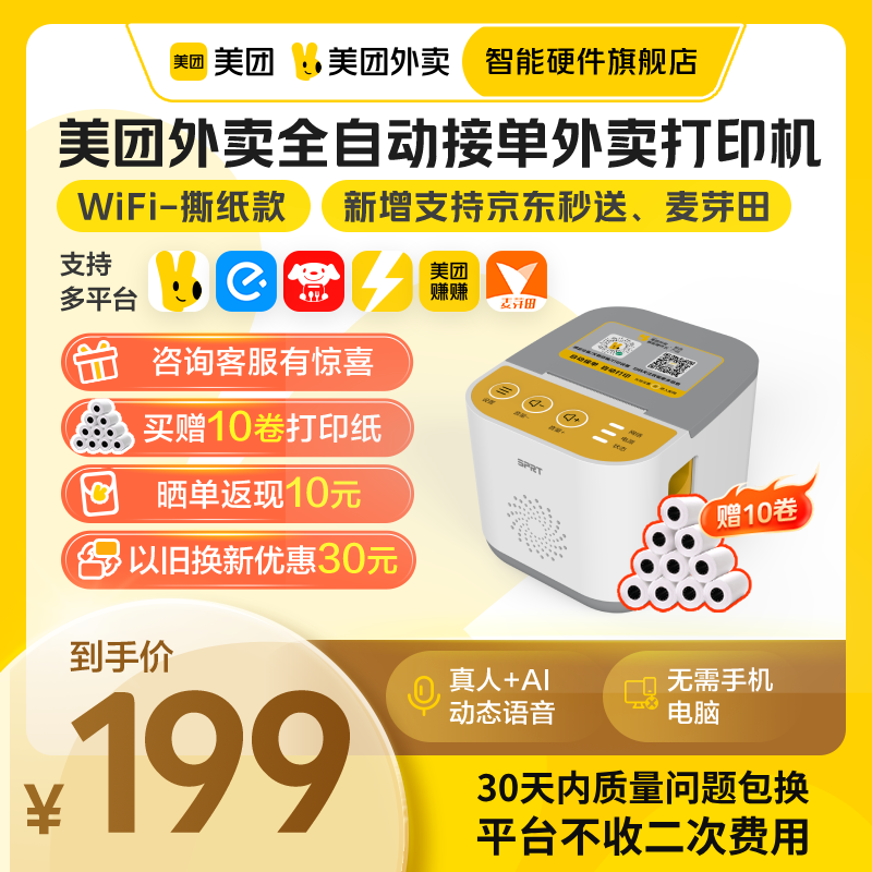 【美团官方】美团外卖打印机自动接单美团打印机京东外卖打单机小票打印机外卖专用wifi票据美团外卖智能硬件