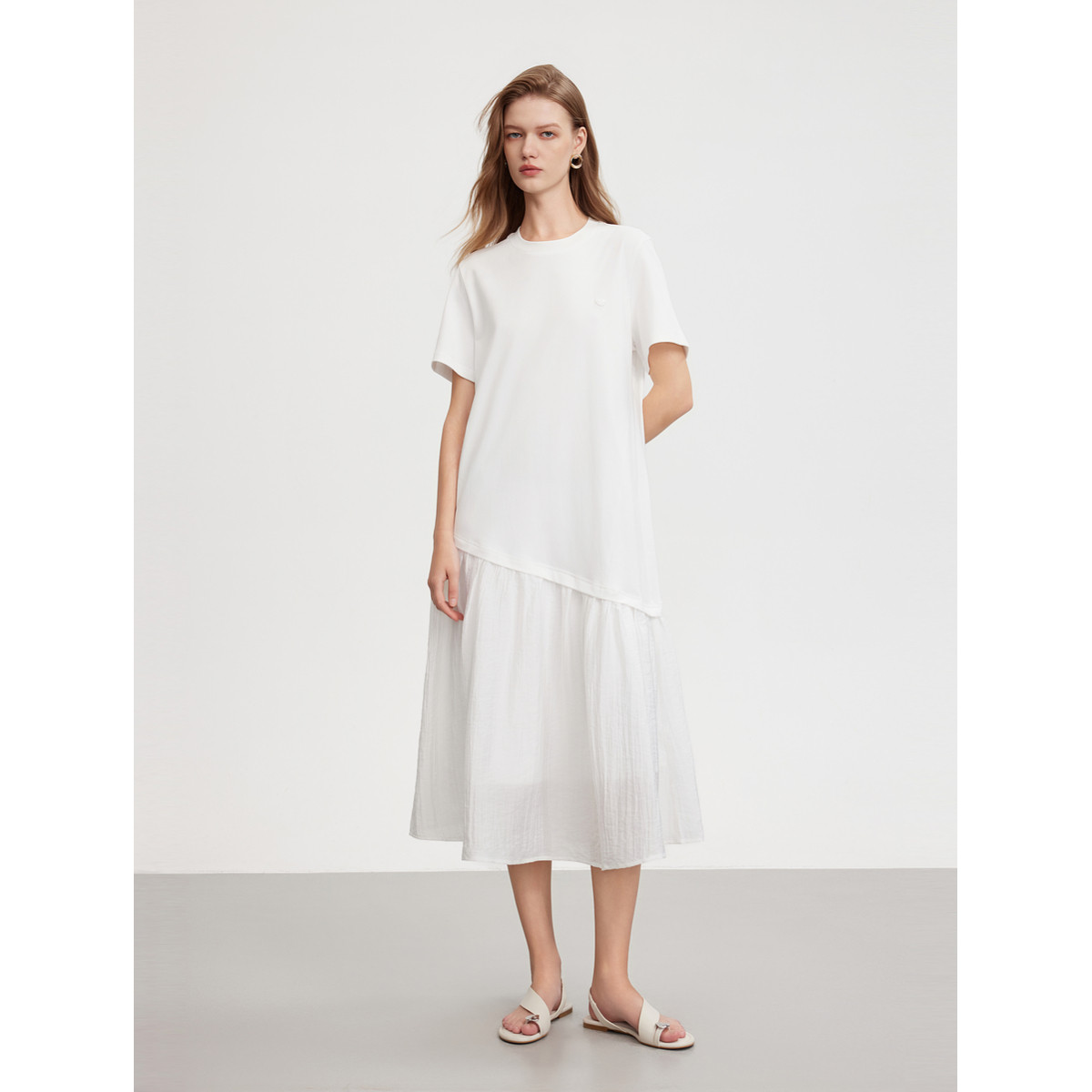 【商场同款】ELLE拼接设计感休闲连衣裙女2025夏季新款宽松T恤裙