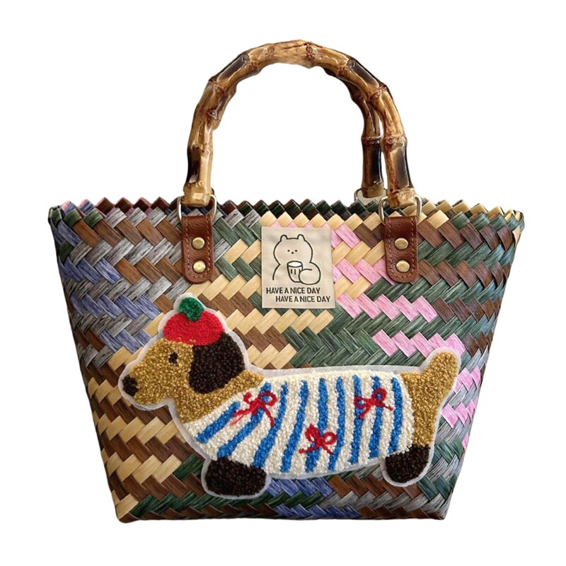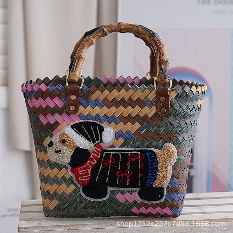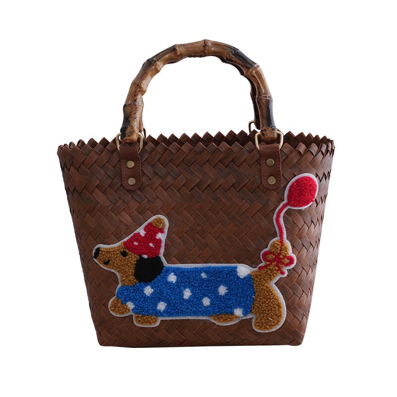 编织包腊肠狗菜篮子复古藤编手提包竹节草编包纯手工竹编包沙滩包